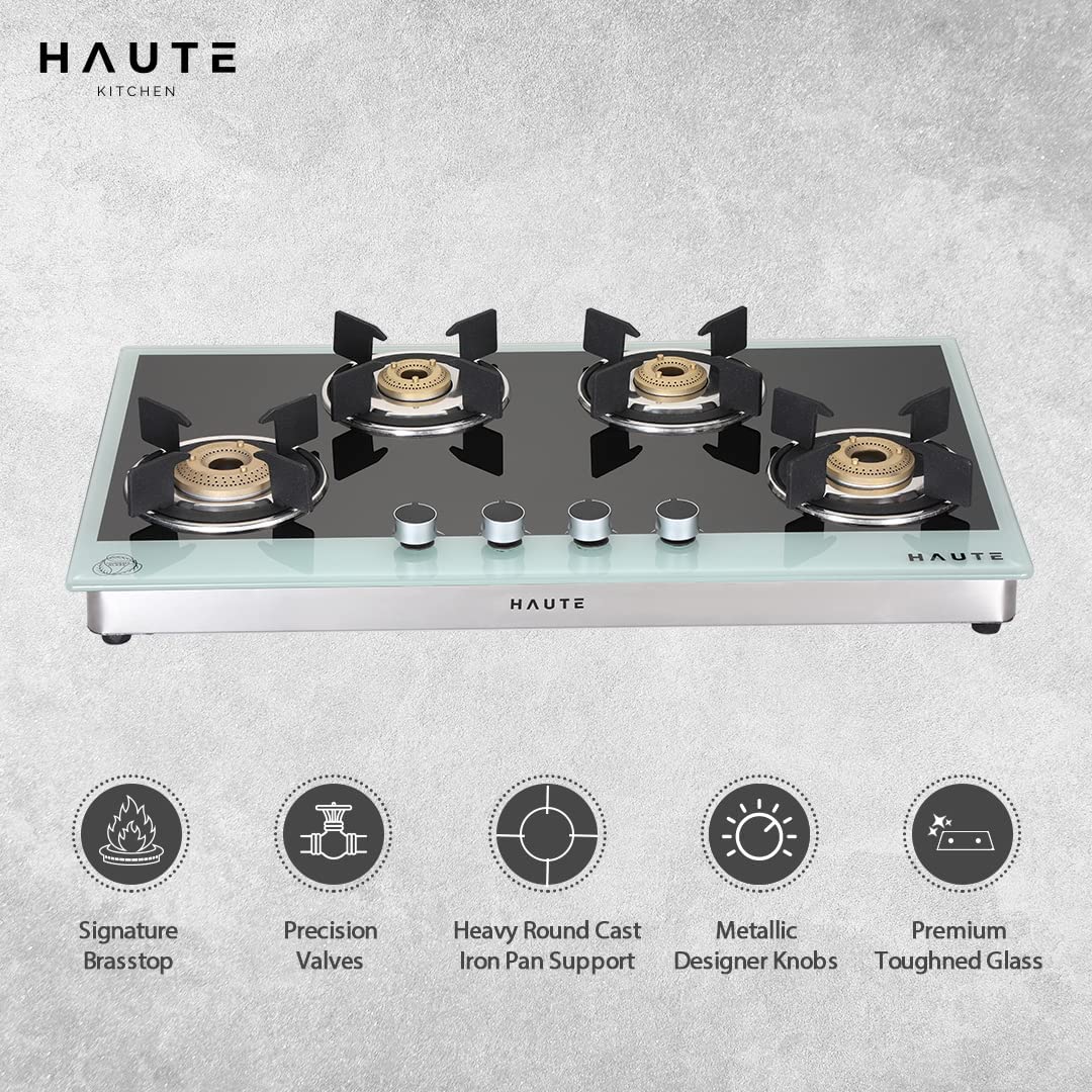 Signature Haute Burners , Italian precision valves , Heavy Duty pan support , Designer Knobs, Premium toughened glass