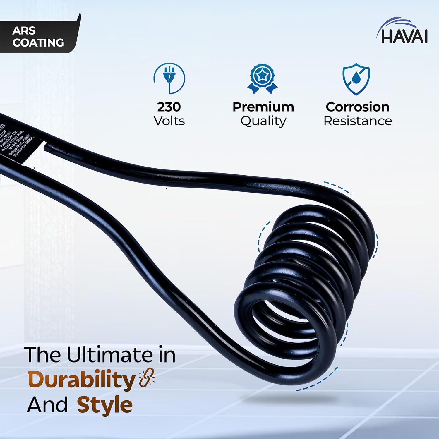 Advanced ARS Coating: HAVAI’s 2000 Watts Shock-Proof Immersion Rod features a premium ARS coating that provides superior rust resistance, especially in salty water, making it ideal for long-term use in Indian conditions.