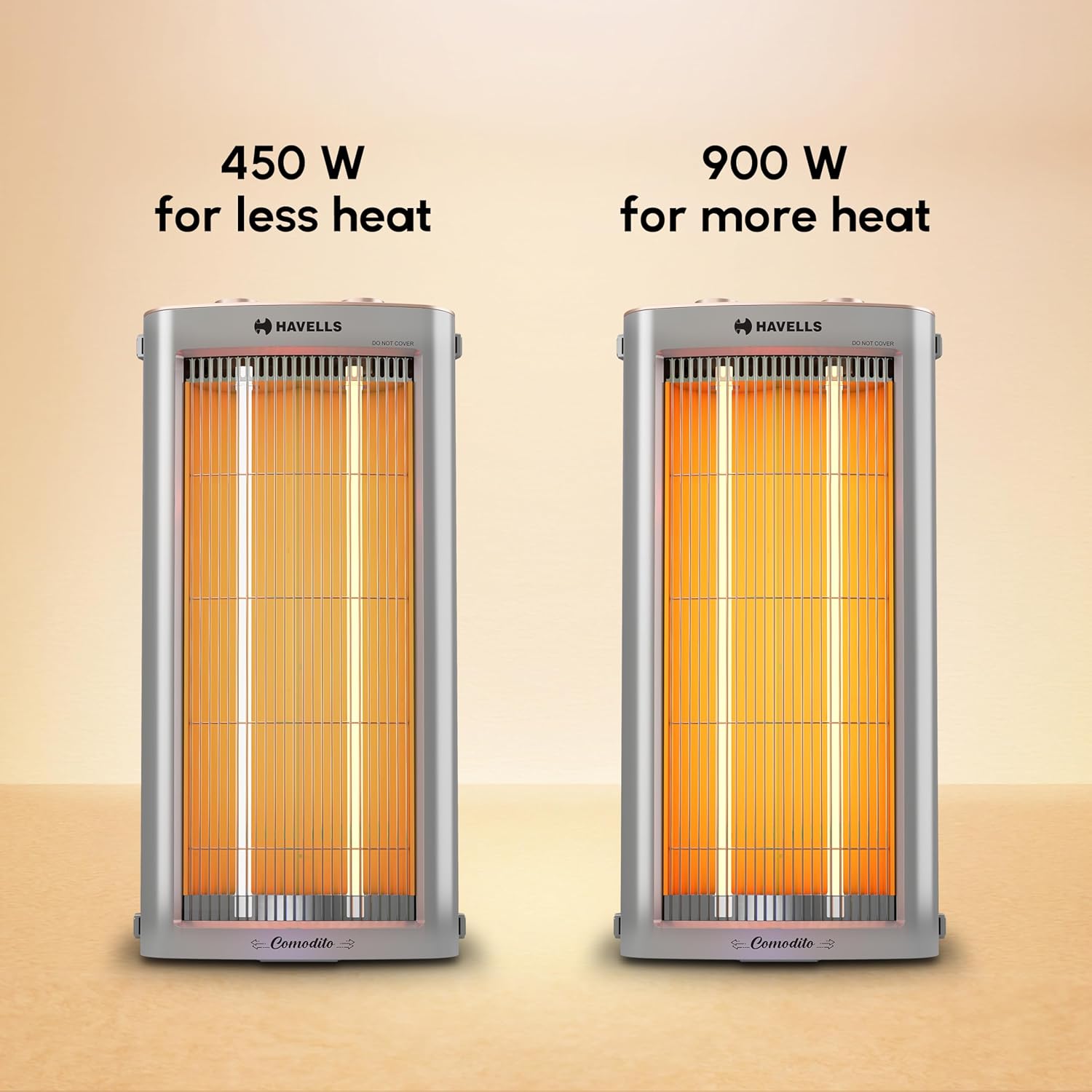 WARM & HOT dual heat setting: Comodito comes with 2 Carbon rods, and both can be controlled as desired, for warm 1 of the rod will be working and when there are more people in the room and more heat is needed on Hot setting both the rods will be working. Total heating power is 450W single rod & 900W both rods.