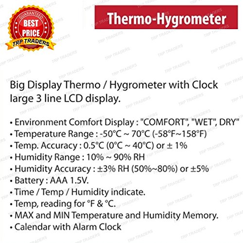 HTC Instrument 288-ATH Plastic Digital Indoor Outdoor Hygro Thermometer with Clock