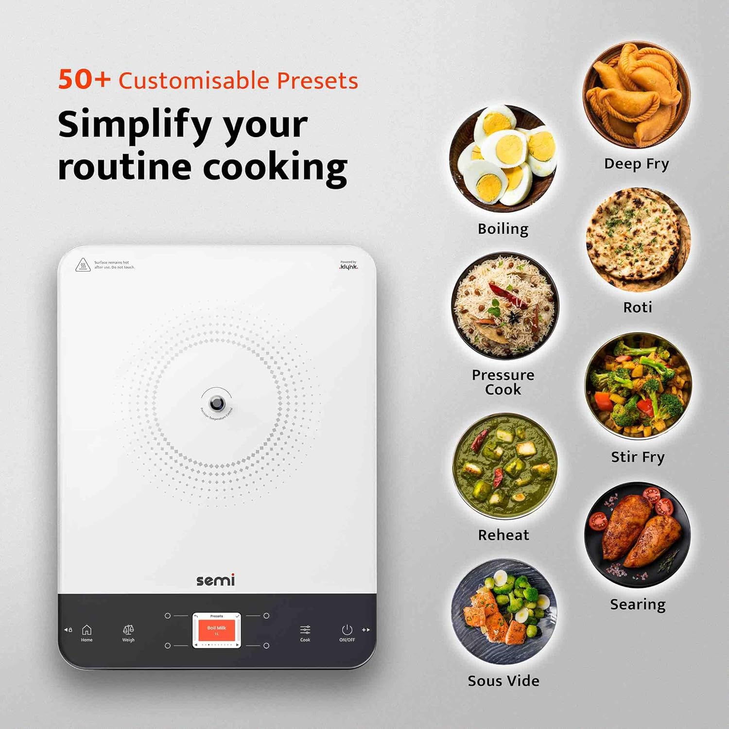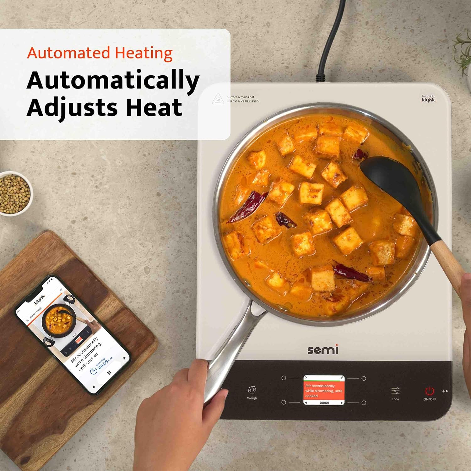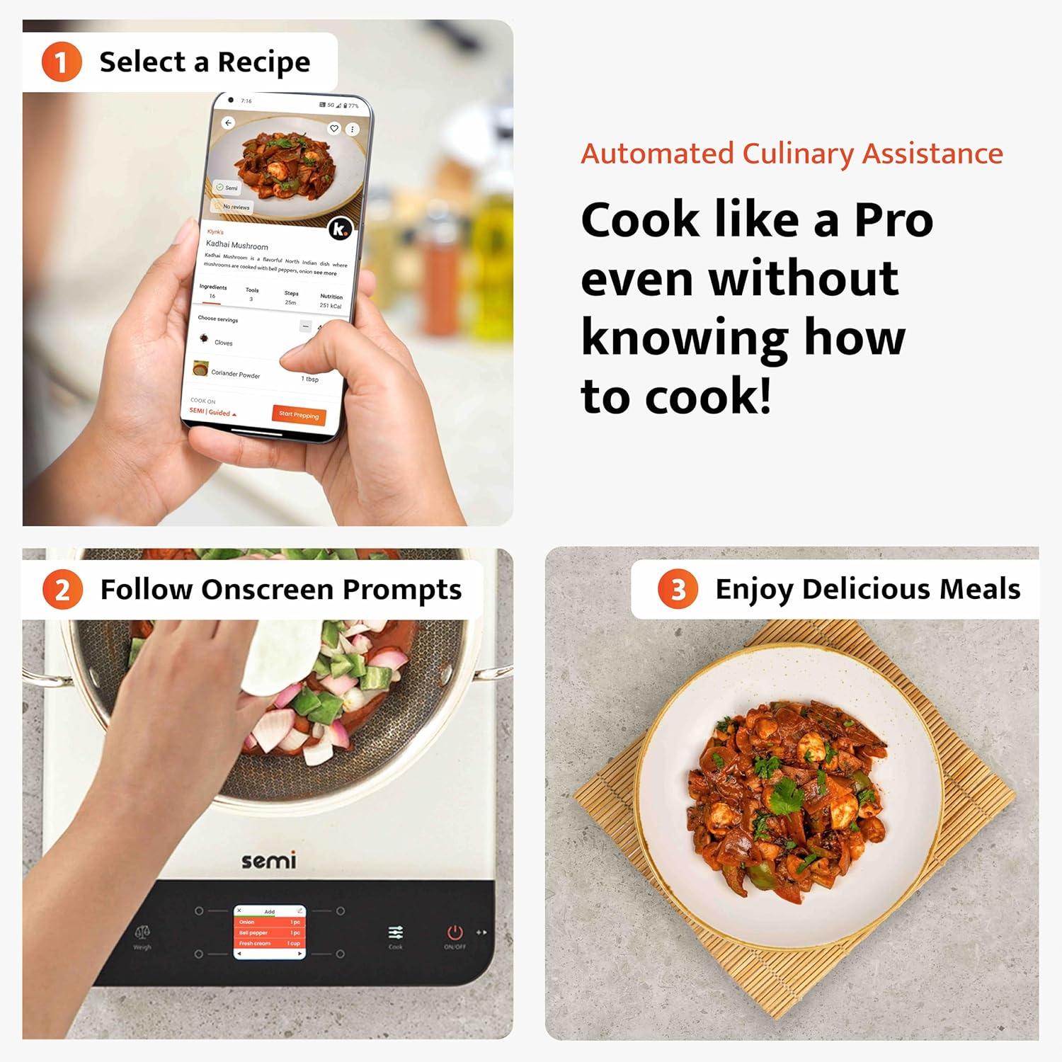 Auto Guided Cooking: Step-by-step cooking instructions + Automatic heat adjustments