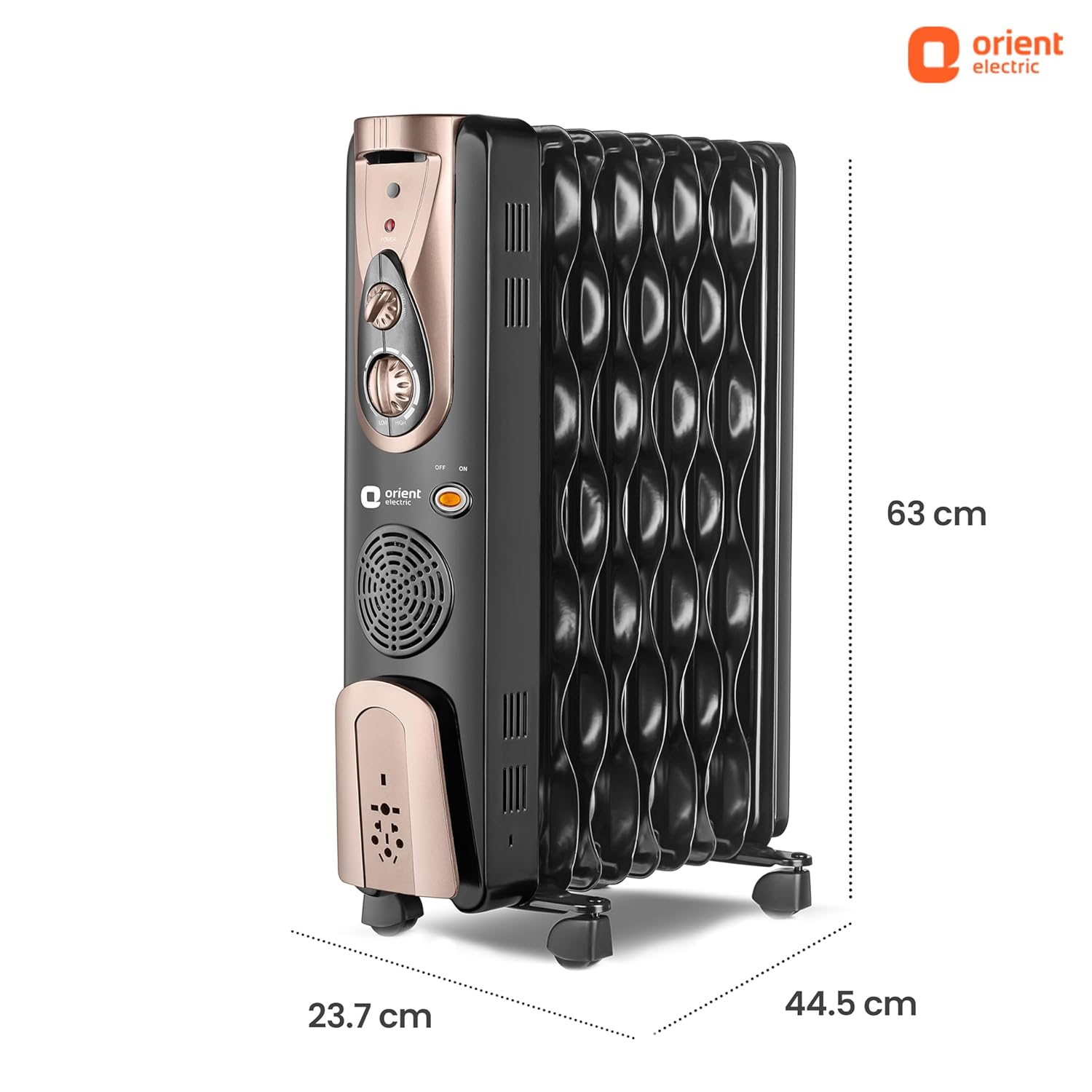 Quick & uniform warmth with S-shaped fins: Orient’s oil heater for home comes with S-shaped fins that have larger surface area to facilitate 11% more warmth as compared to conventional heaters.