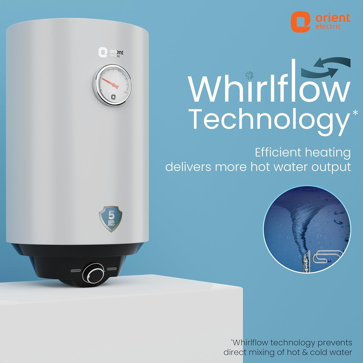 20% MORE HOT WATER OUTPUT WITH WHIRLFLOW TECHNOLOGY: Equipped with the cutting-edge Whirlflow technology, our Glassline Storage 25 litre geyser yields 20% more hot water by minimizing the direct mixing of hot and cold water.