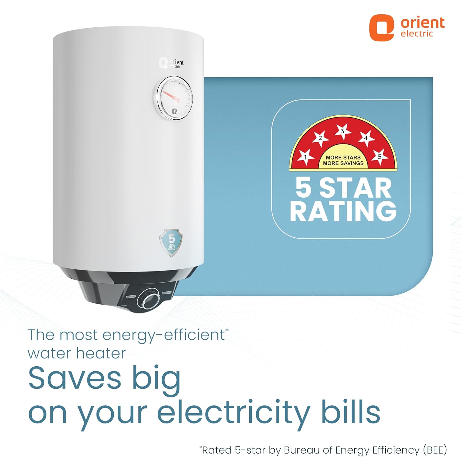 The Bureau of Energy Efficiency (BEE) has rated this water heater 5, which is the highest rating for energy efficiency. The PUF insulation of the geyser prevents the transfer of heat into the outside environment, keeping your water hot for long, saving re-heat time & energy.