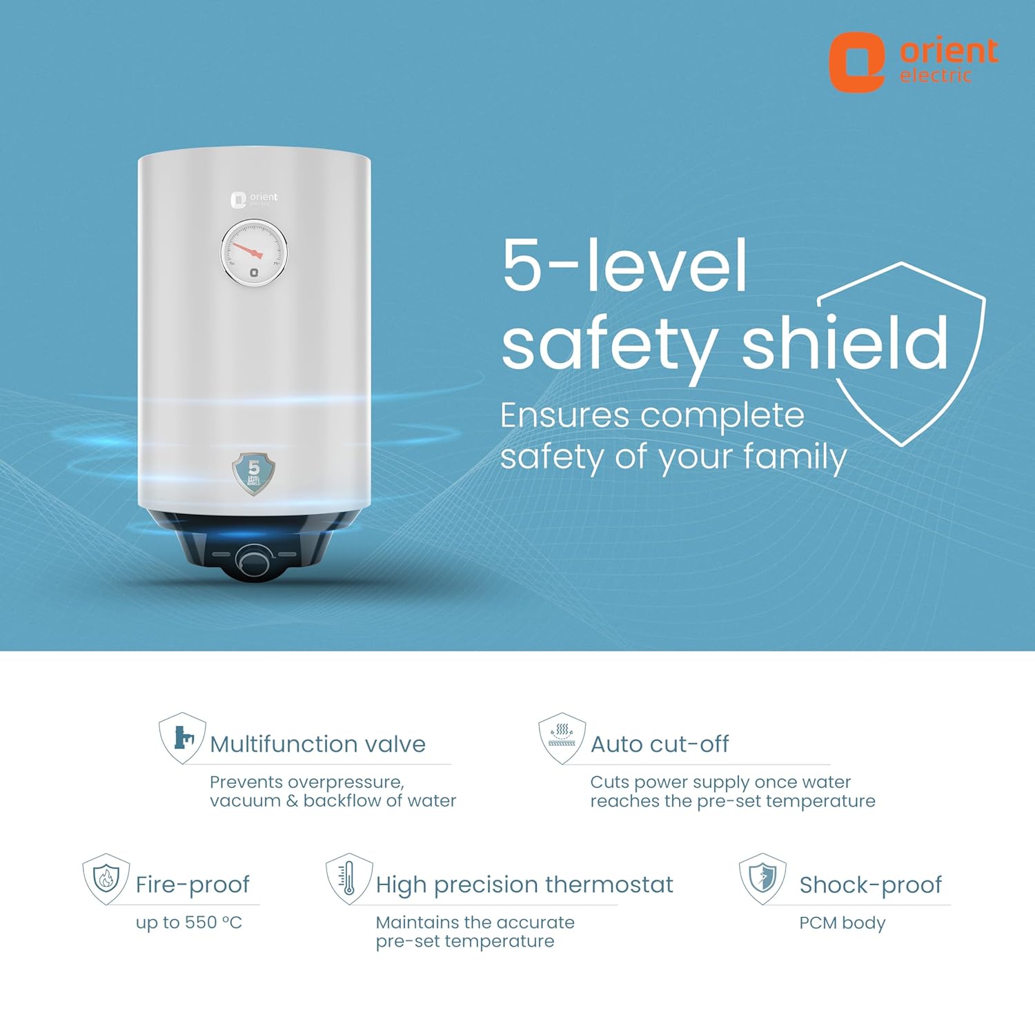 ENHANCED SAFETY & BETTER LOAD EFFICIENCY: This electric water heater for home comes with a multifunction valve for enhanced safety, as well as a moulded 3-pin plug for better load efficiency.