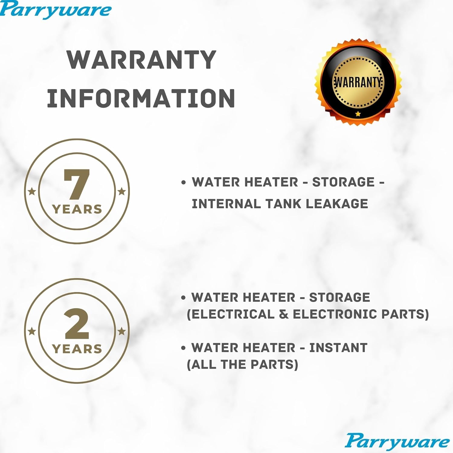 WARRANTY: 7 Year on Tank and 2 Year on Product; It is recommended that maximum line pressure of water at the inlet is checked and on appropriate model is selected to ensure a trouble free performance