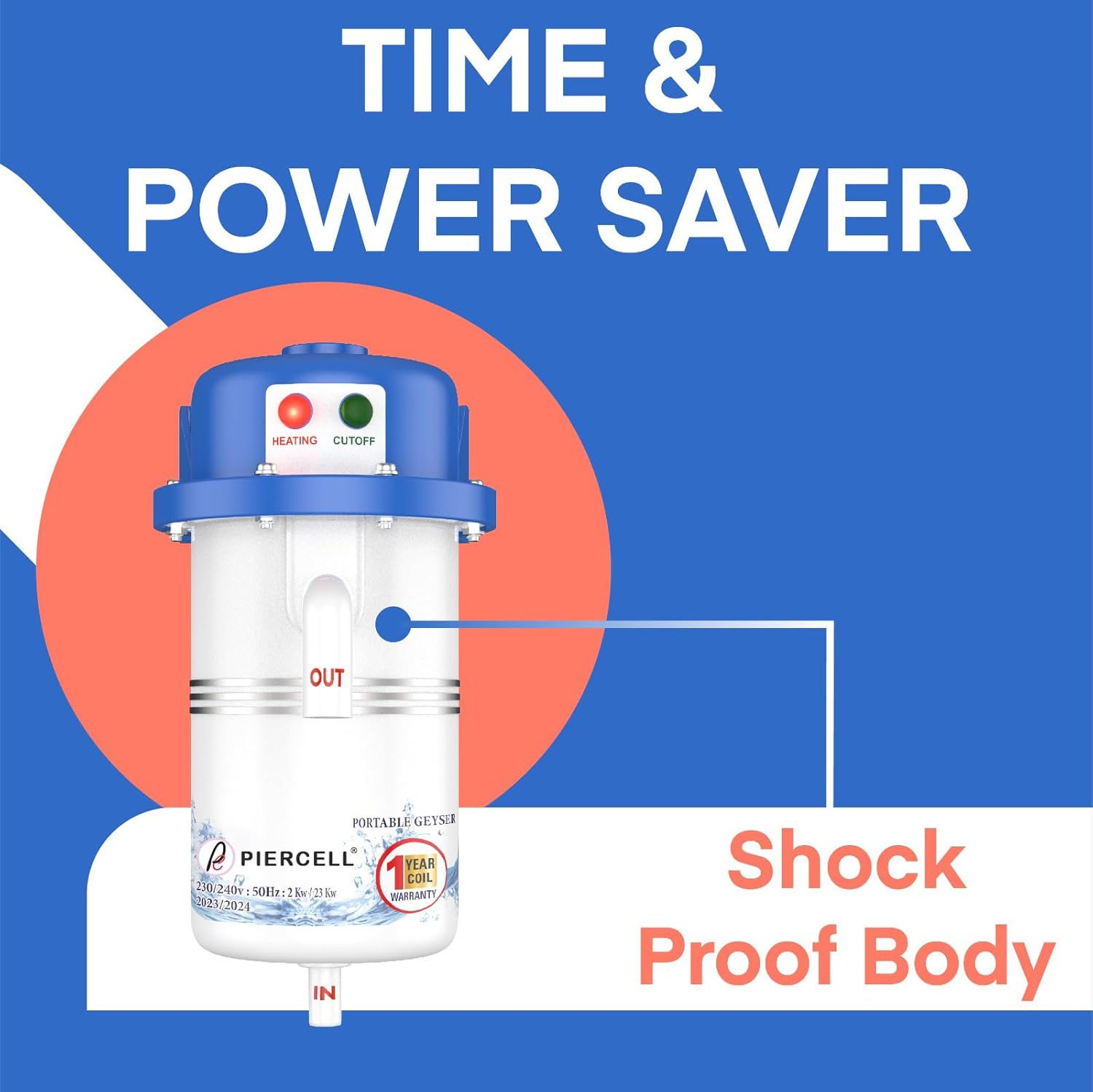 Instant water heater: Now comes with unbreakable First Class ABS (Acrylonitrile butadiene styrene) body and comes with water inlet and outlet Thread type. It is more convenient for usage and it will avoid water leakages. Our geyser is portable, instant, and compact, less power consumption Up to 20% saves electricity compare to other storage geyser