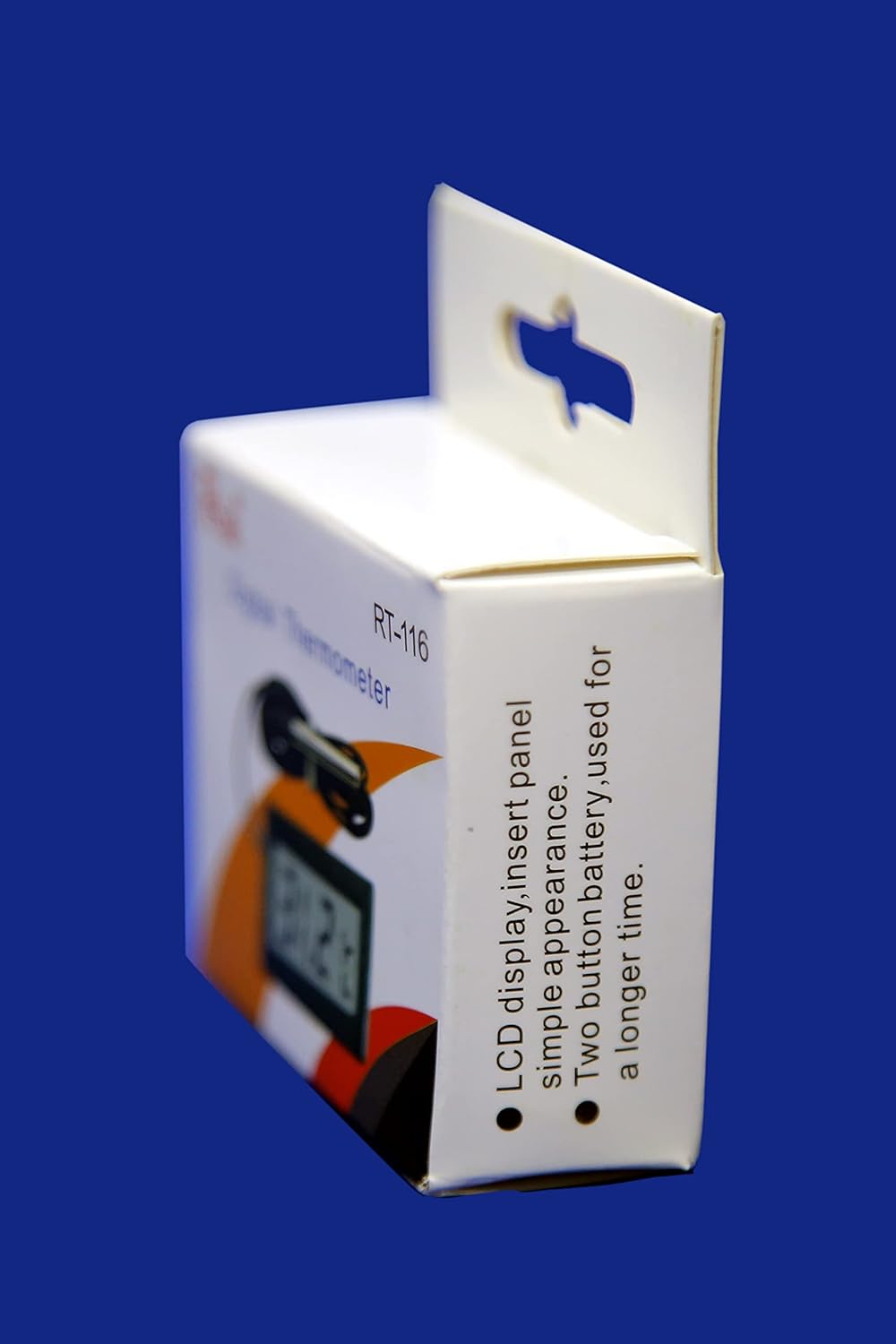 Modelling simple, elegant, LCD panels inline connections, moisture-resistant, strong anti-interference, applies to refrigerated cabinets, display counters and other needs of temperature measurement and display of various equipment. Features: Long probe line: 80cm molded case probe specifications: size: 47 x 28 x 14mm, weight 22g, package size: 60 x 70 x 20mm, Package weight: 33g, package include: 1 x digital LCD thermometer.