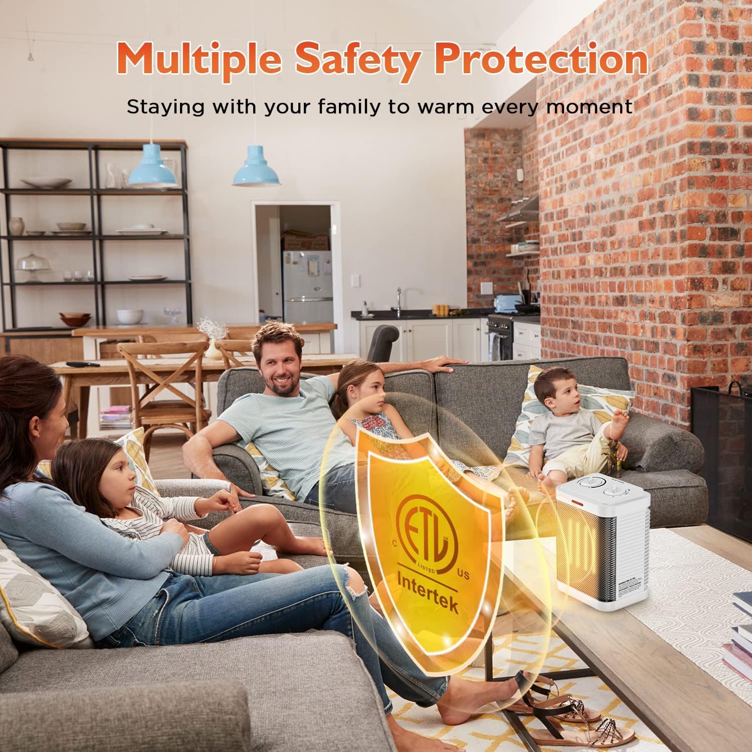 【Advanced Safety】: Overheat protection and an enhanced tip-over switch ensures this indoor electric heater shut off instantly in any unsafe situation. Safety fall-over feature is a must. Automatically turns the unit off if overturned or lifted.