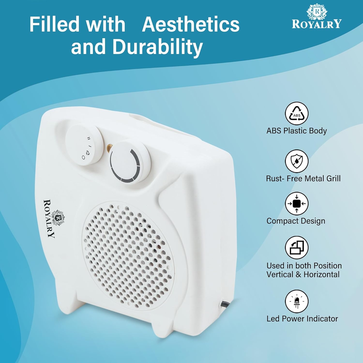 【COMPACT & PORTABLE DESIGN】:- Sleek and compact, the Royalry 2000W heater comes in an elegant white finish, blending into any room’s decor. Its lightweight design makes it easy to carry and move between different areas, allowing you to bring warmth wherever you need it. Ideal for both home and office use, this portable heater offers convenience without compromising on heating power.