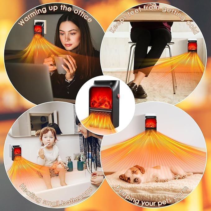 COMPACT DESIGN: Wall-outlet mounted mini heater perfect for small spaces like bedrooms, offices, and bathrooms