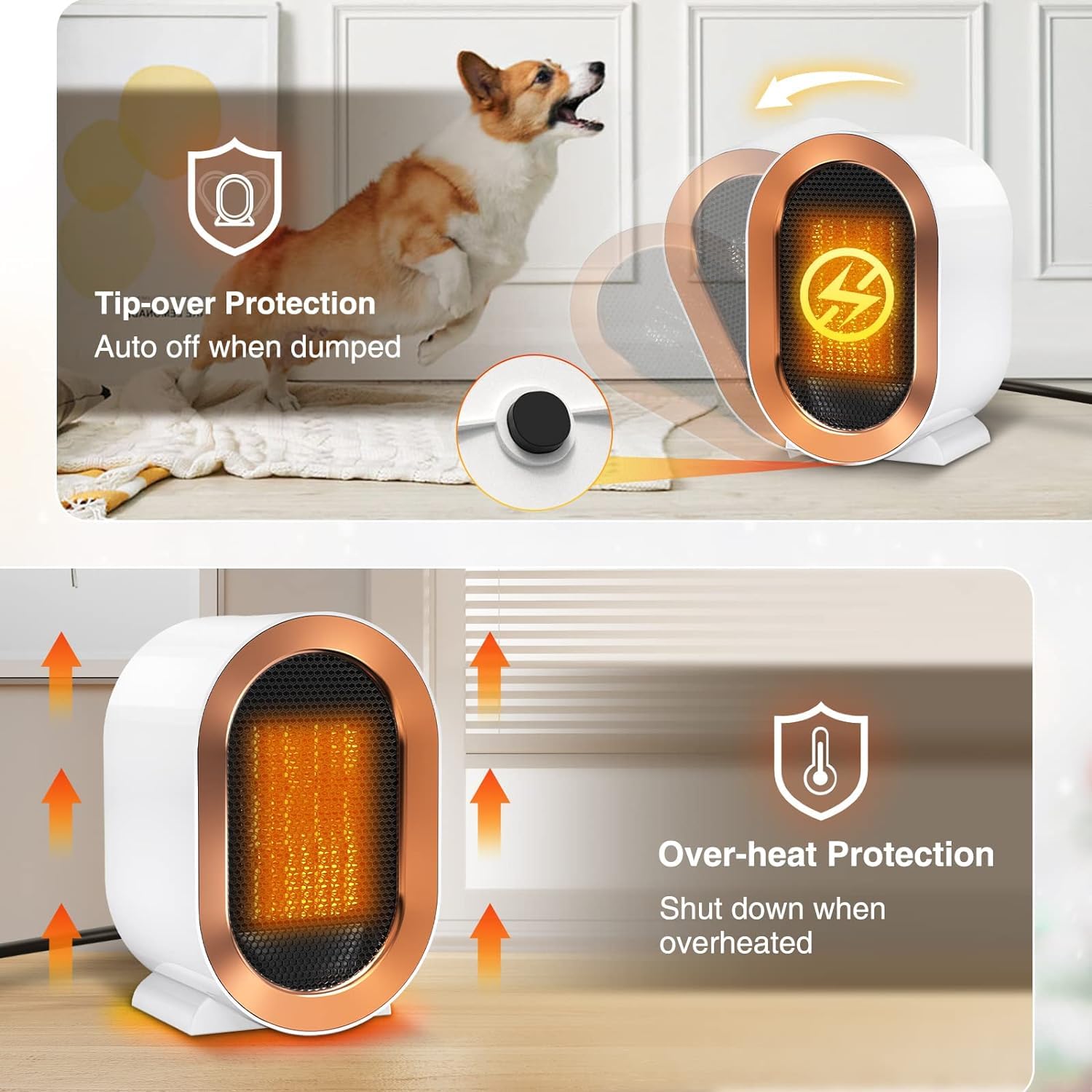 ✔ Tilt Protection —— Automatically shuts off and stops working when fan heater falls or tilts