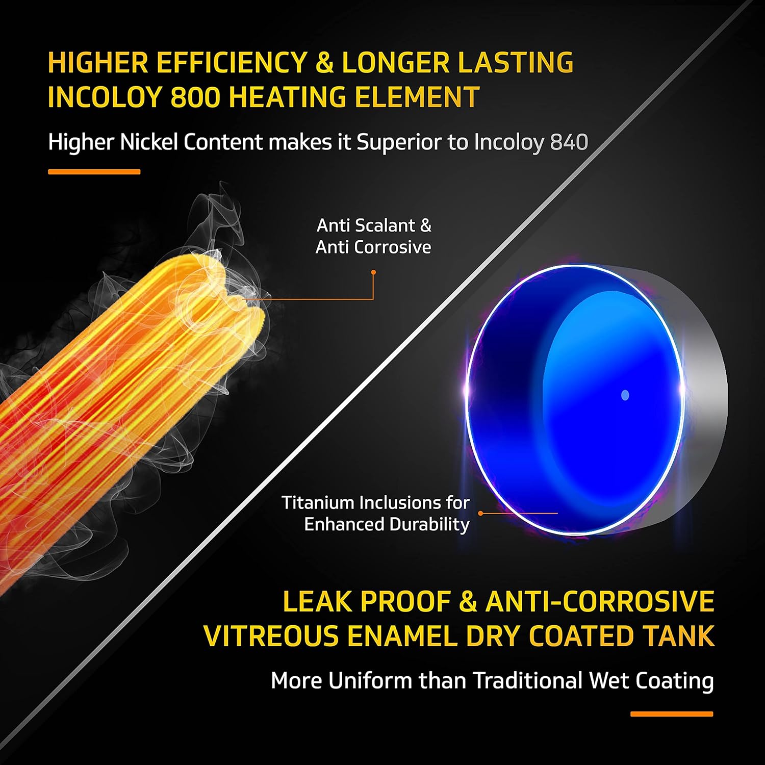 【ANTI-CORROSIVE & SUITABLE FOR HARD WATER USAGE】: Advanced Vitreous Enamel Coating protects the Inner Tank, Superior Incoloy 800 Heating Element ensures Sustained Performance, Extra Thick Magnesium Anode provides Added Protection
