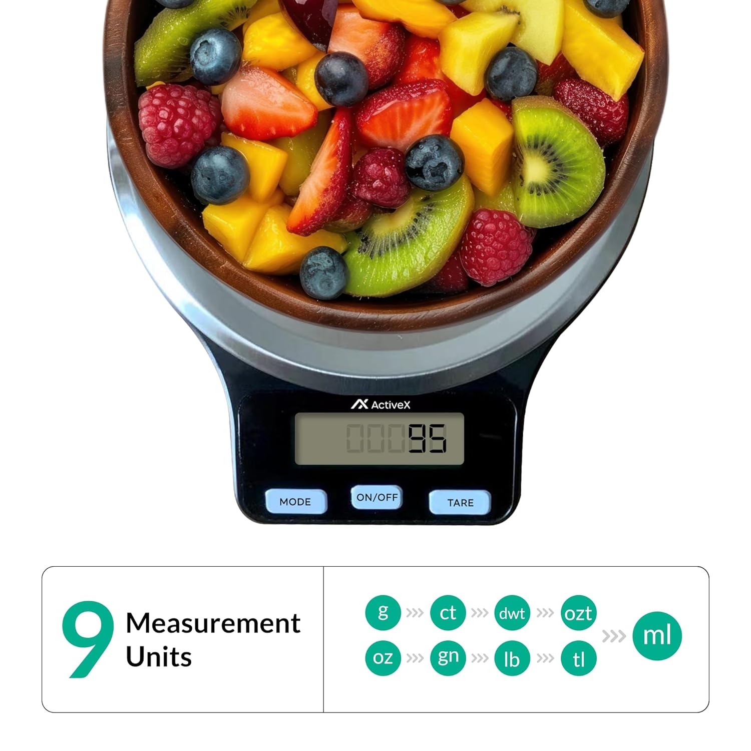 The kitchen scale is designed with food-grade 304 stainless-steel platform for easy cleaning and maintenance.