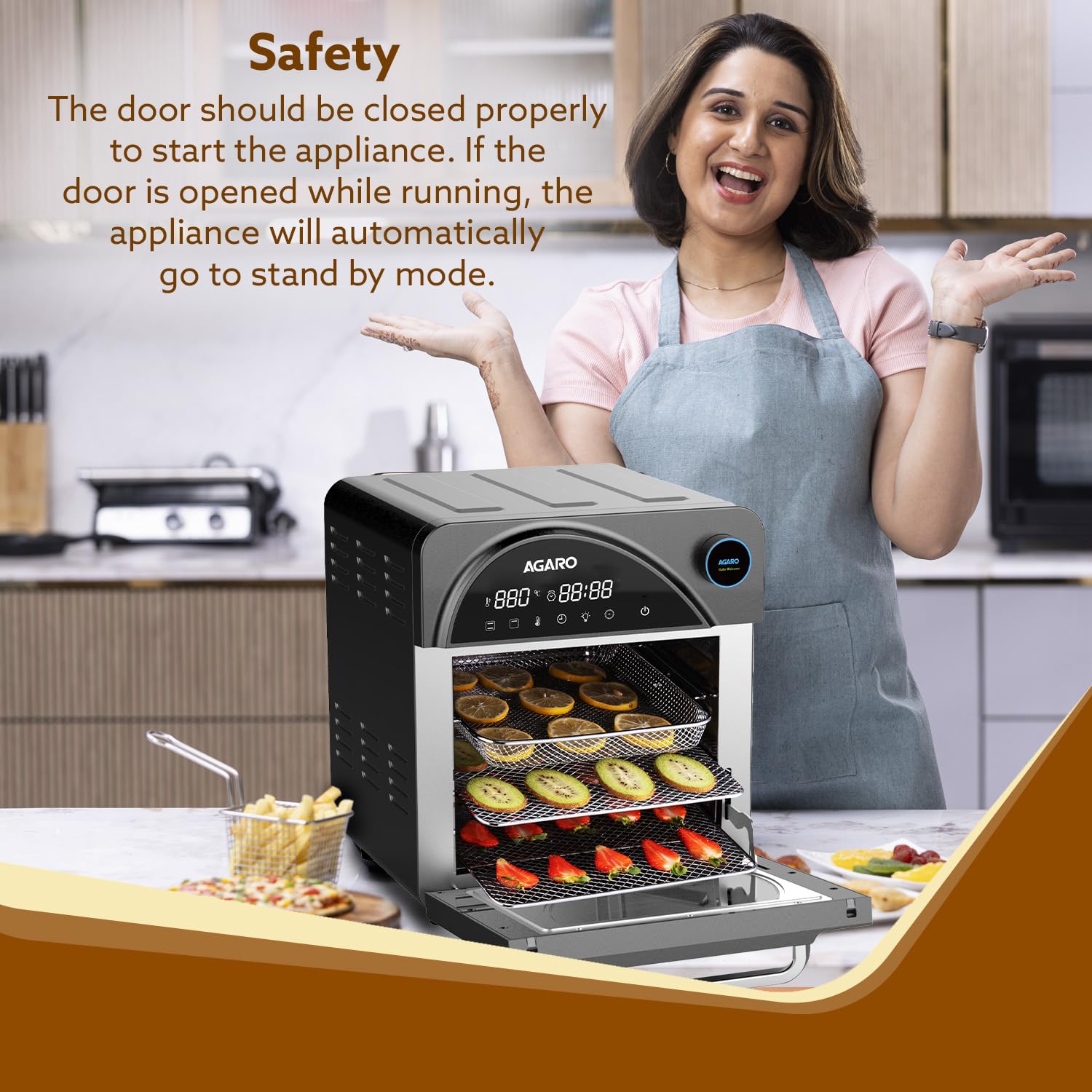 This air fryer oven comes with built in Overheat protection & Auto Shut-off on door opening.