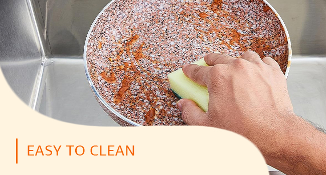 Food particles are less likely to stick to the surface of the non-stick coating, making this cookware easy to clean by hand or in the dishwasher.