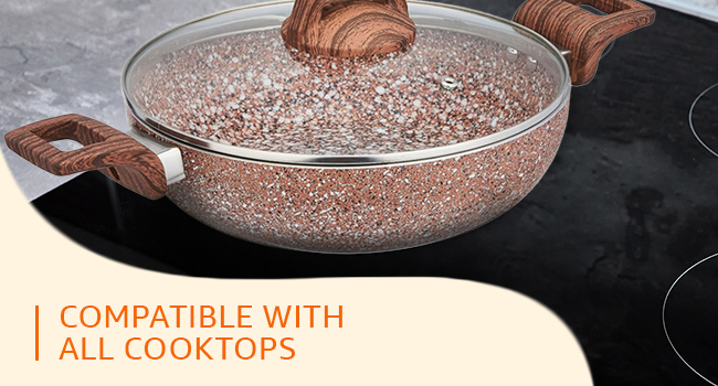 It is compatible with both gas-stove and induction cooktops.