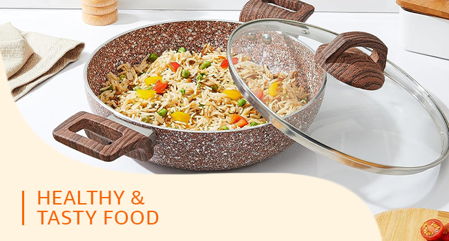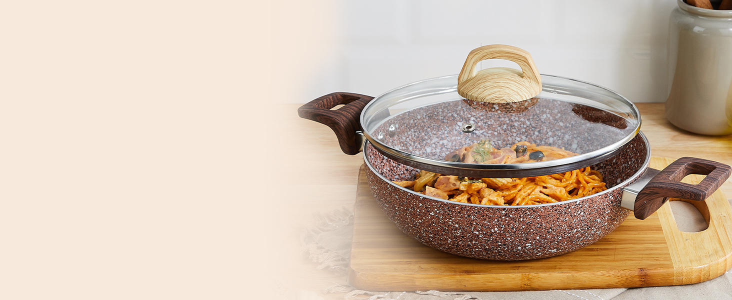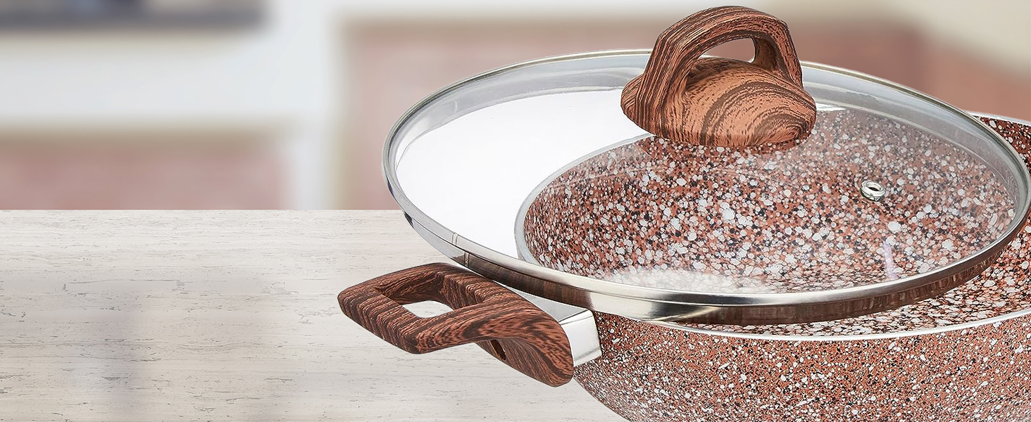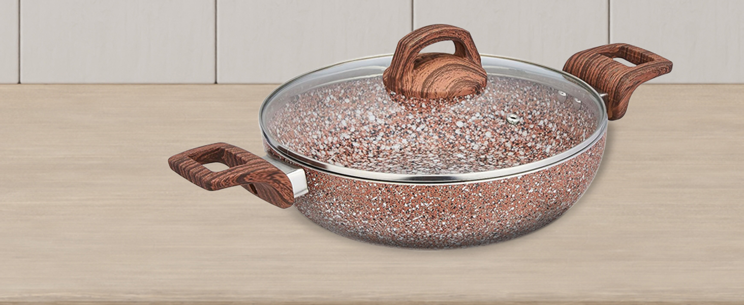 COLOUR: Rust Granito; 1 deep kadai (24 cm) with glass lid; Thickness: 3.5 mm