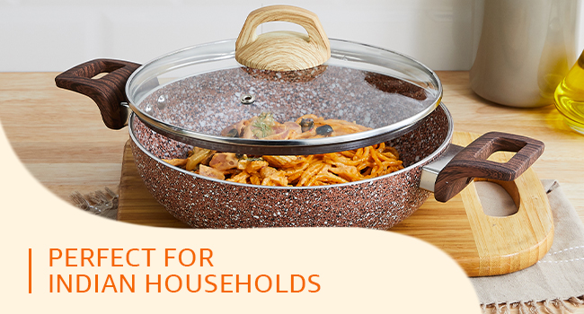 COMPATIBLE WITH ALL COOKTOPS: The induction base with small perforation boosts faster cooking while helping you consume less electricity. This cookware is compatible with both gas-stove and induction cooktops.