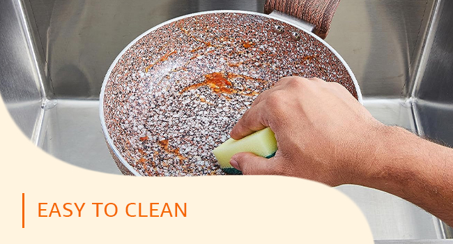 Food particles are less likely to stick to the surface of the non-stick coating, making this cookware easy to clean by hand or in the dishwasher.