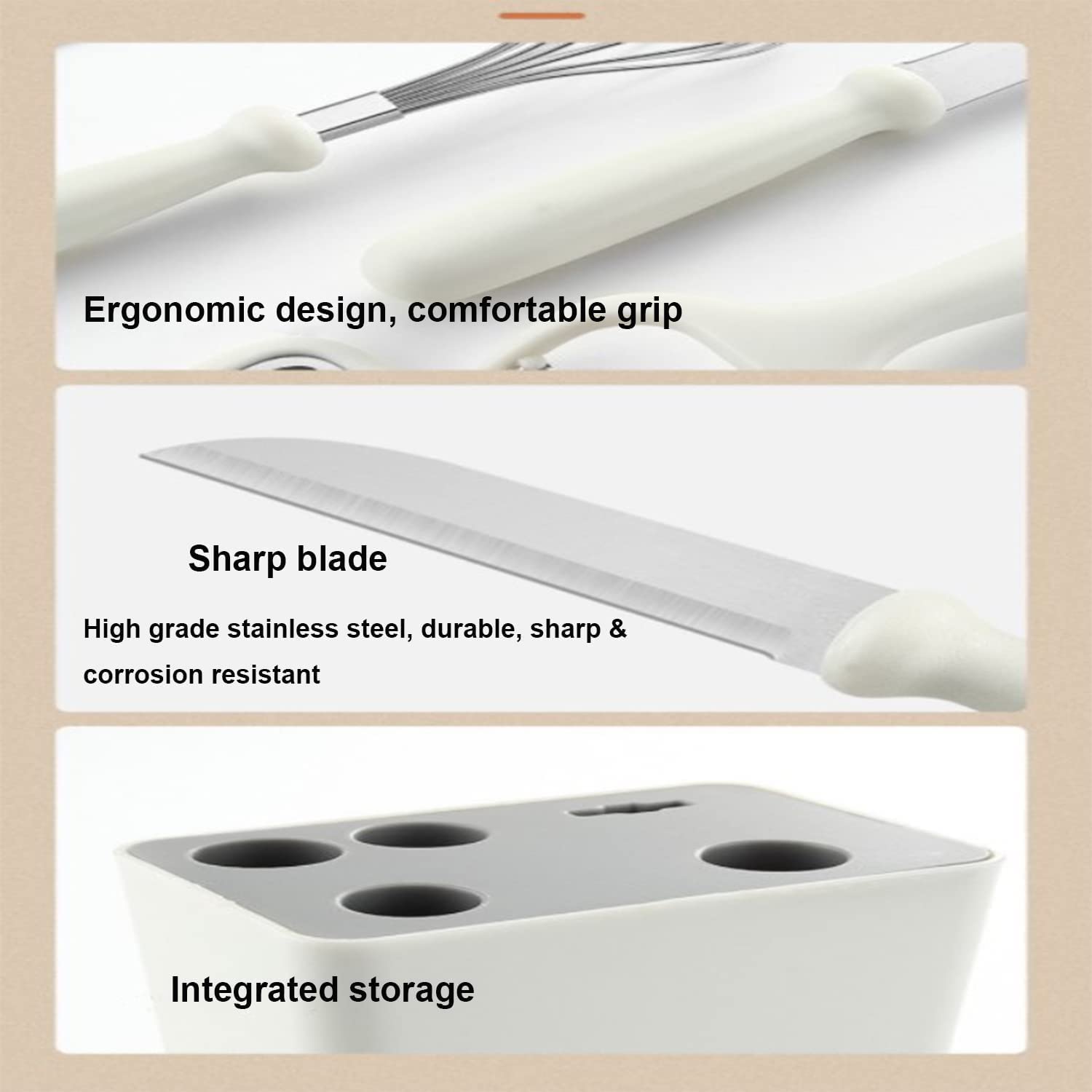 THIS KITCHEN GADGET: set include: blades Peelers 1 Fruits Knife, 1 Vegetable Scissors, 1 egg beater,1 Peeler,1 Bottle Opener and 1 Standing Storage Base kitchen sets cucharas para cocinar kitchen utensil kitchen cooking utensils kitchen cooking set cooking utensil silicone cookware.