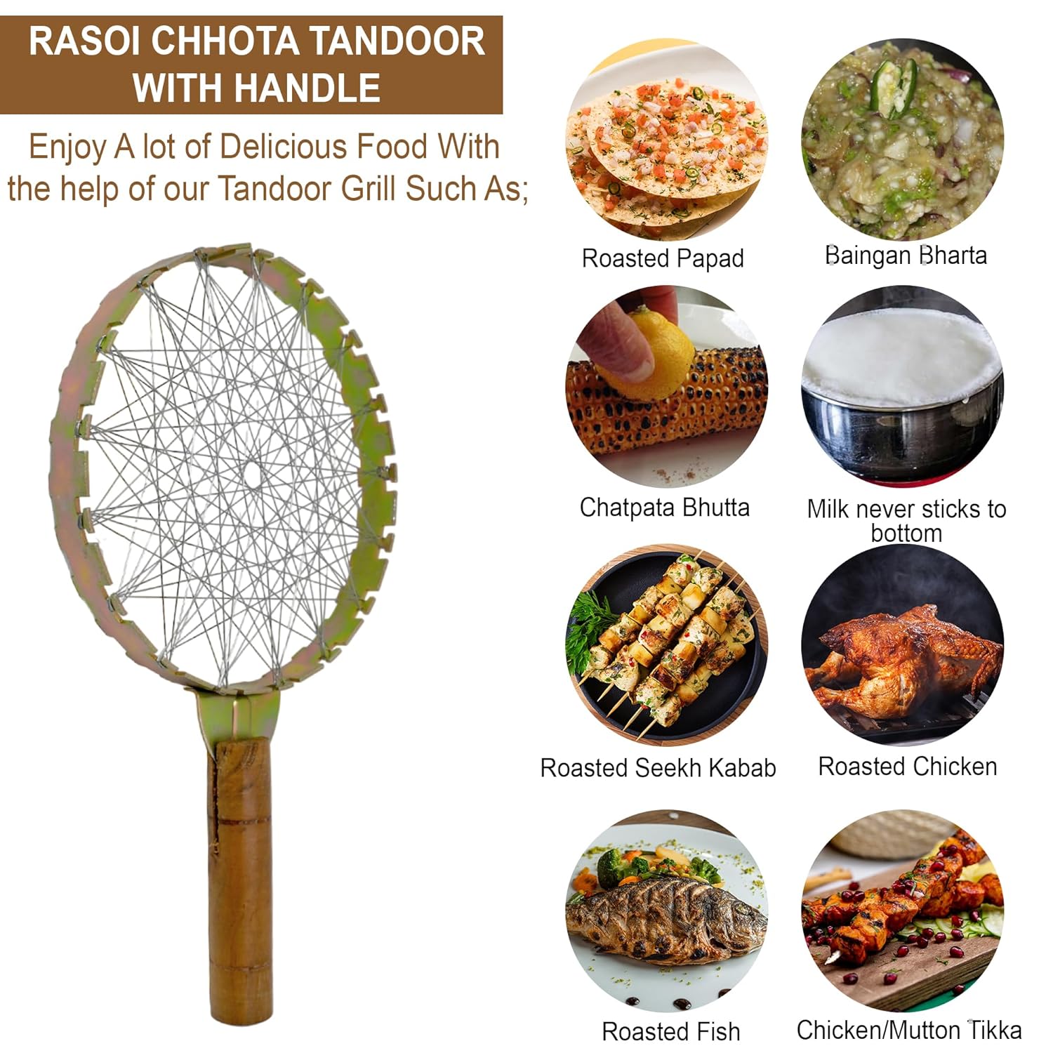 ★ {Package Contains} – 1 Gas Grill Tandoor Jali with Wooden Handle. Ring Size (14 cm)