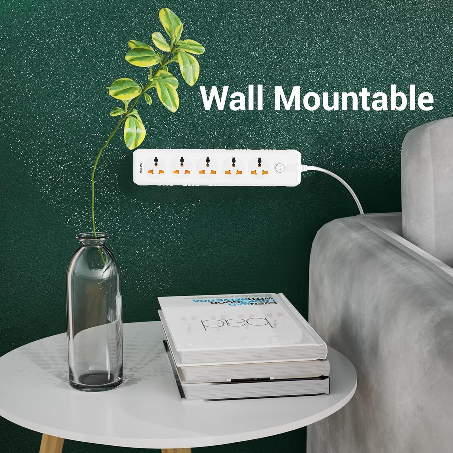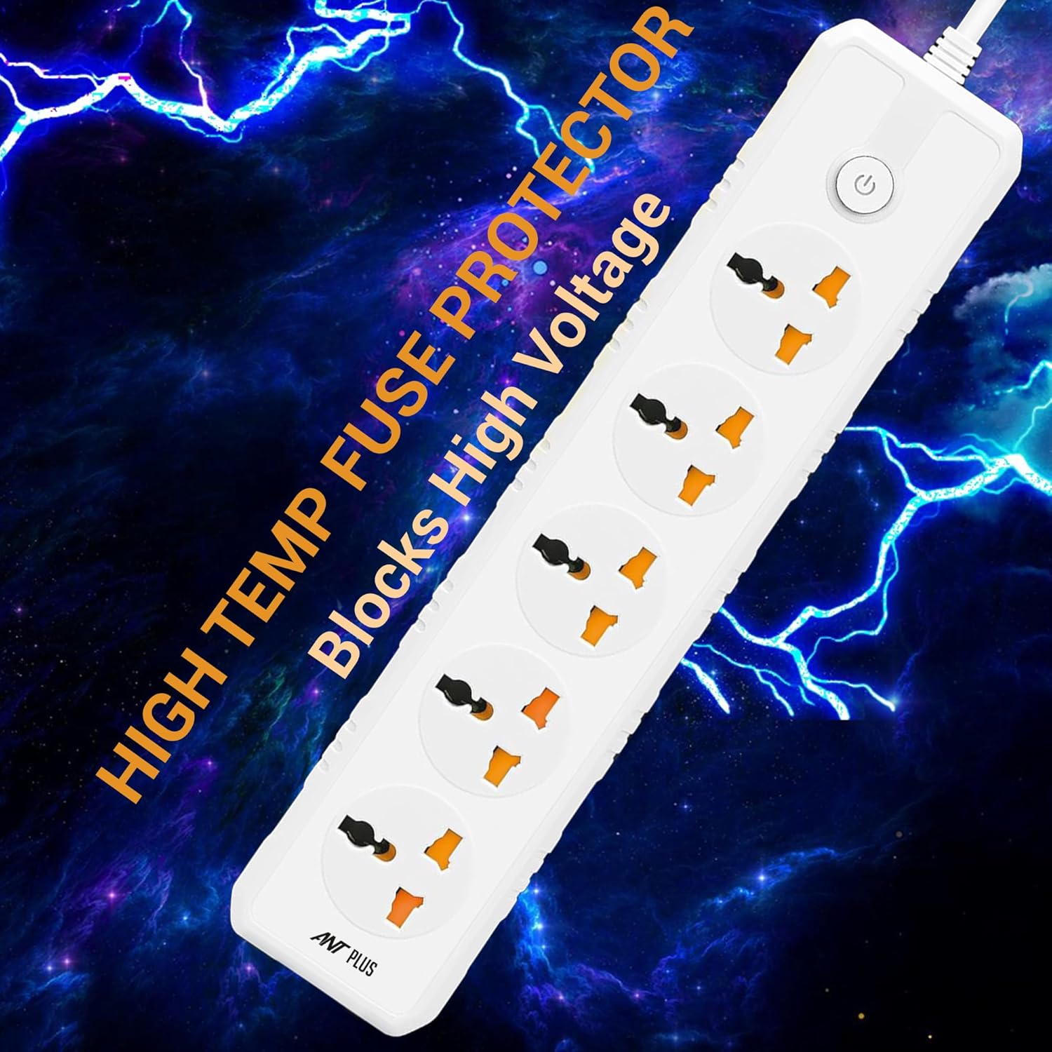 Ant Plus PS500 comes with 5 universal power sockets for efficient multi-tasking for home / office, comes with safety shutters and grounding design ensure complete protection for you, your family, and your devices.