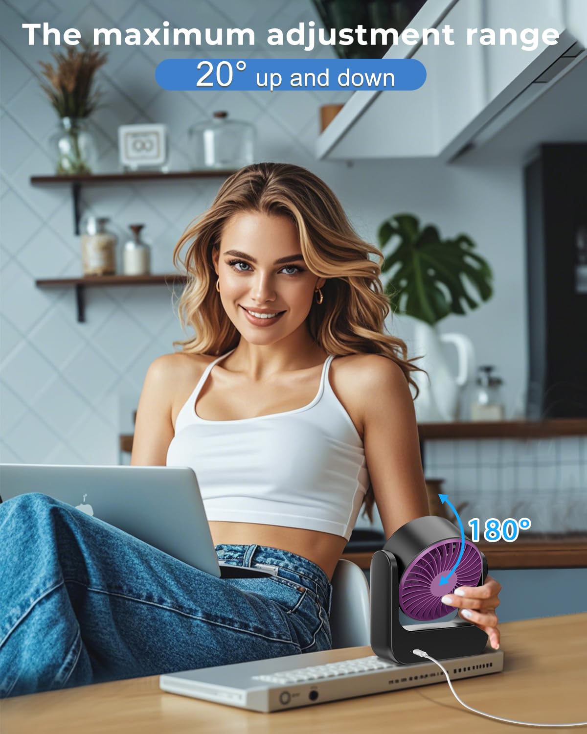 Whisper-Quiet Operation – Designed for low-noise performance, this small table fan for office desk keeps you cool without disturbing your work or sleep.