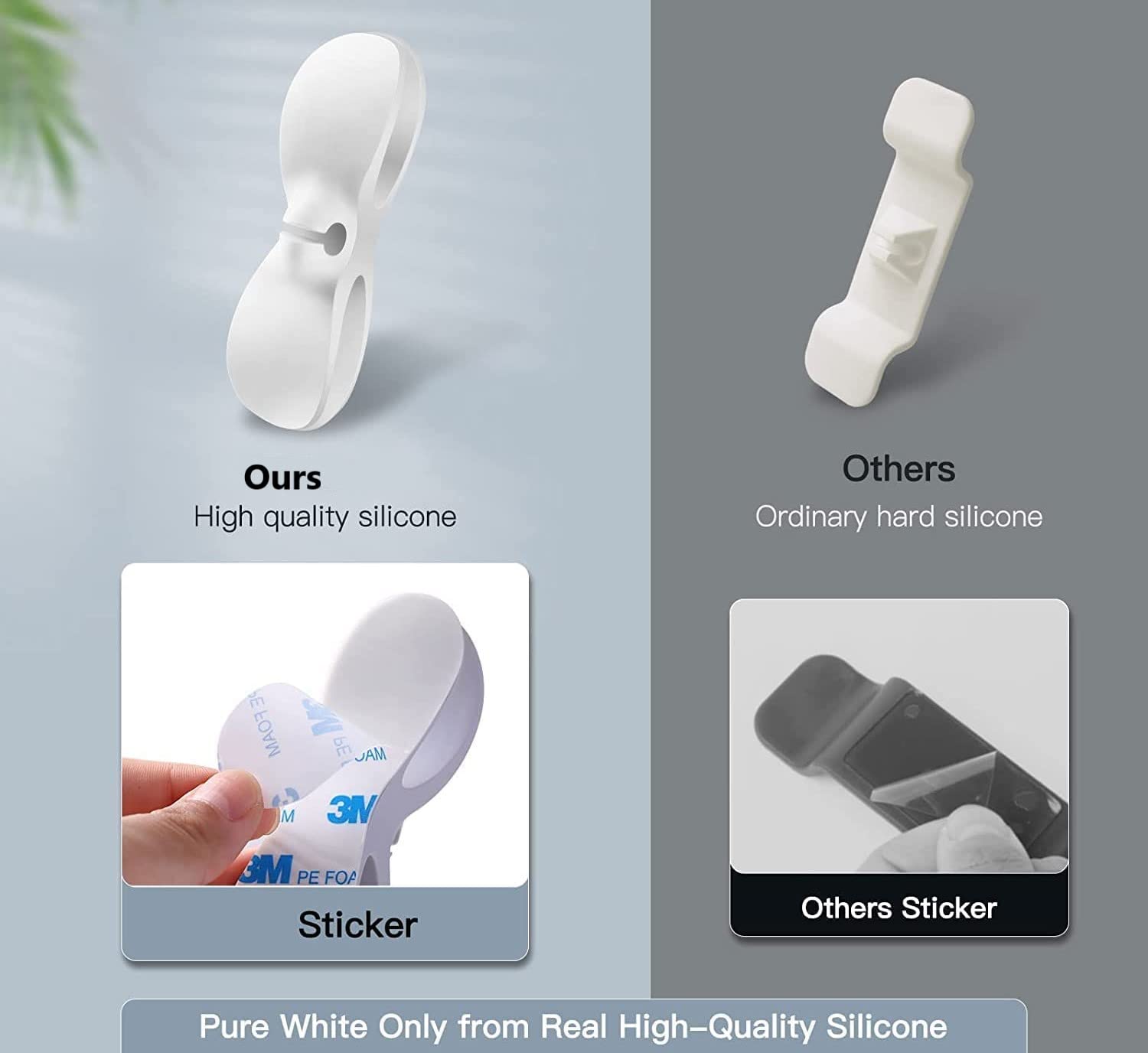 The Newest design for Cord Organizer Upgrade Made of high grade Silicone material, durable in use. Self-adhesive effect can mount on most smooth surface, like glass, wood, wall, etc. You will never lose your cable at the floor or behind the desk when you own a cable organizer like this. Desktop wall wire fixed self-adhesive abs wire clip network cable finishing buckle cable wire organizer. It can keep all your cables within arms reach while in use and also remain in place while disconnected. This cable organizer is designed for a single cable wire fixing, to make your desk and office tidy and organized. Heat-resistant Strong Adhesive we have chosen the bottom glue of 3M high-quality heat-resistant adhesive, which can be safely applied to heating appliances such as pressure cookers, toasters, etc. Wider Sticking Area The entire back of our product is the bonding area, the glue has a larger contact area with the machine, so that the wire winder of the kitchen appliance sticks firmly to the appliance and will not fall off. Wider Storage Space Cord Organizer is 1 inch high and 1.8 inch long with Butterfly wing design, so there is enough space to completely wrap wires of different lengths and thicknesses without scattering. Curved Surfaces Available Softer flexible rubber material makes it perfectly fit the curved surface of the appliance. Larger contact area and better fit, so it is stronger and more durable.