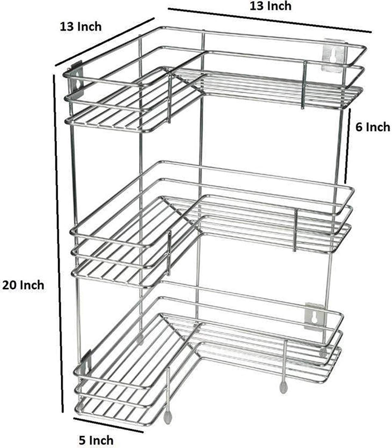 PRODUCT : ASHLAS Stainless Steel 3 Layer Kitchen Storage Shelf, Silver Multipurpose Storage Rack.FEATURES:☛ L-shaped Corner Stand is made of high quality Stainless Steel and is rust-proof.