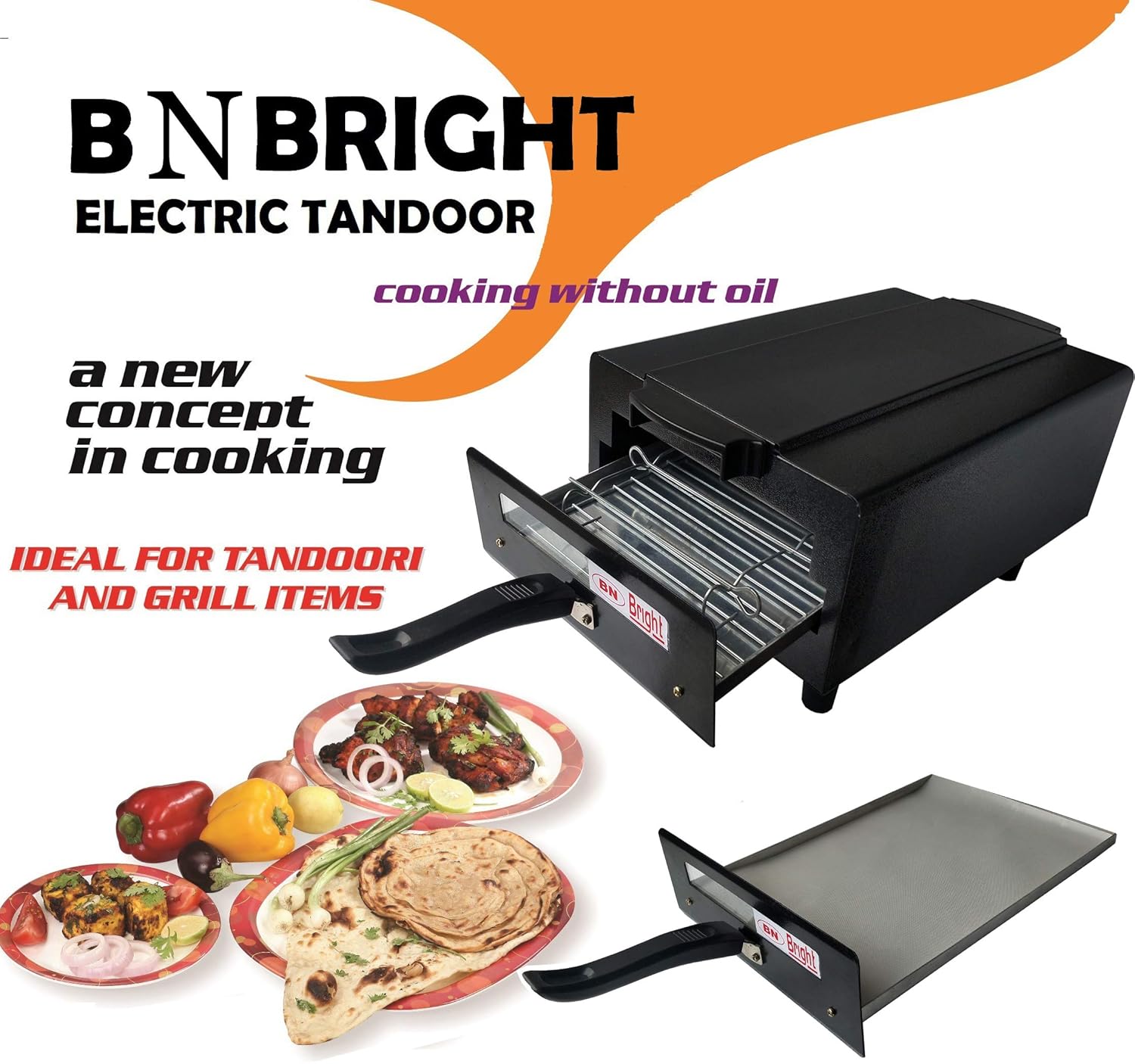 BNBright Electric Barbecue Tandoori Grill CRC Seat Powder Coating Body SS Element 1 Year Warrenty Cooking All Barbecue Tandoori Dish Like Roti Naaqn Prantha Bangian Roast Dal Bati Paneer Tikka Mushroom Tikka Govi Tikka P{izza Tandoori Chicken Tandoori Mutton Tandoori Aloo Litti ect