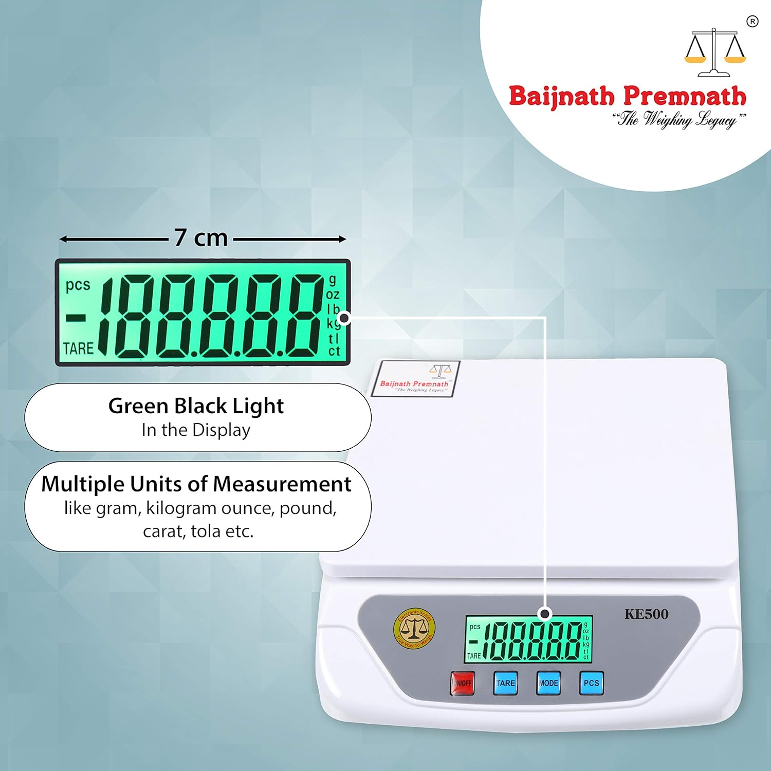 Baijnath Premnath Premium Digital Kitchen and Commercial Weighing Scale is a strong and precise device which can weigh up-to 30Kgs. The measuring platform is 18 x 22 centimetre to support heavy items. Read out accuracy of 1 gram.