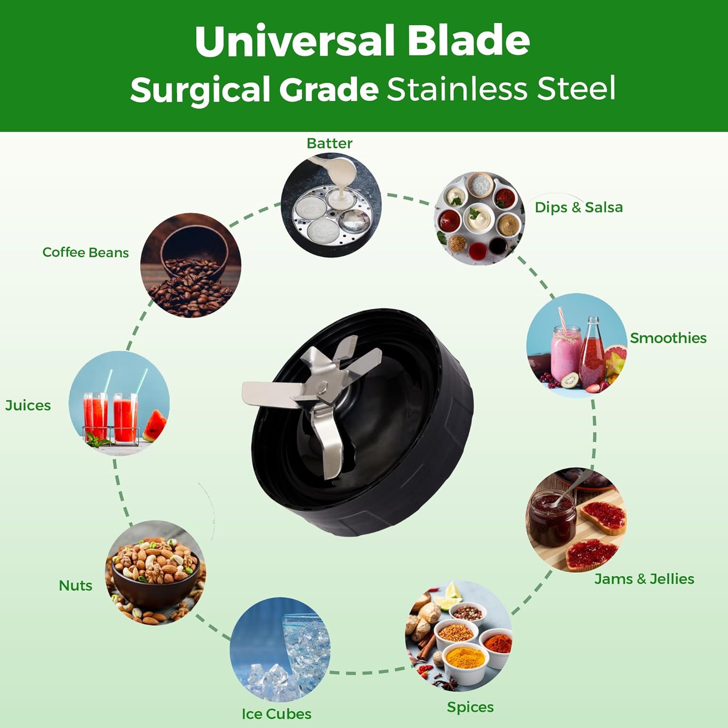 ALL IN ONE – UNIVERSAL BLADE: This Nutri Blender is specially designed with hardened surgical grade stainless steel blade which handles every ingredient easily. Thus, no need to change the blade which makes it a perfect blender for smoothie and juices. You can now grind nuts, spices, ice cubes, make all types of batter, sauces, dips etc