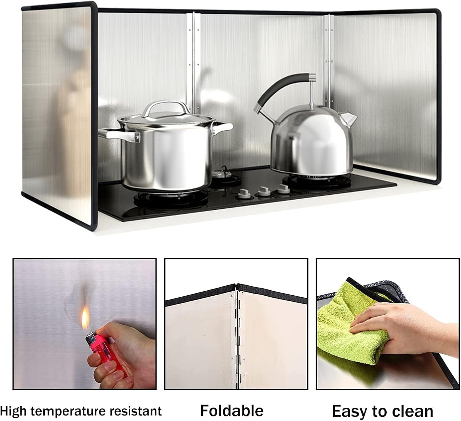 {4-Sided Design} : Offers comprehensive protection against oil splashes, keeping your walls, stove, and countertops clean.