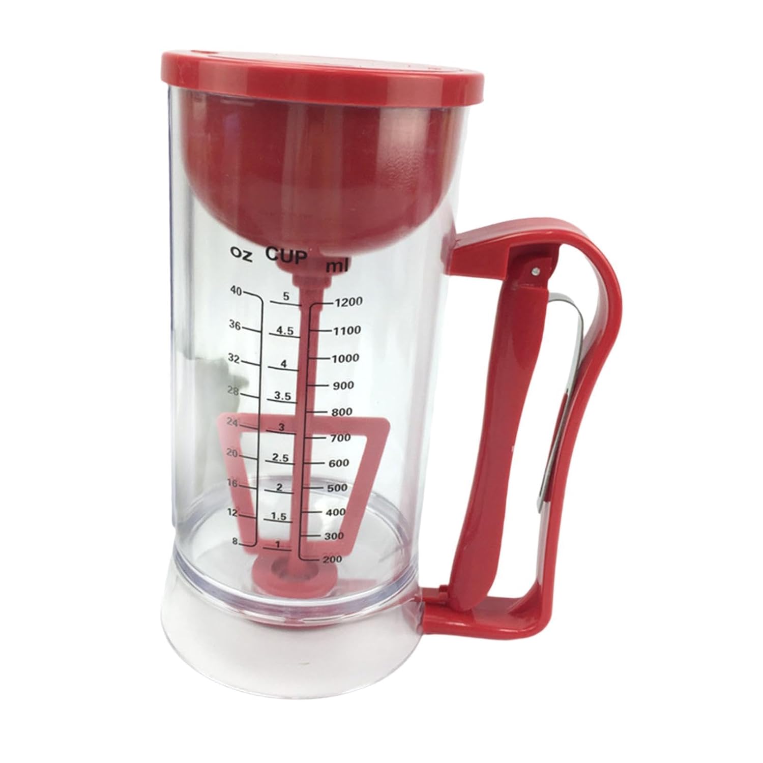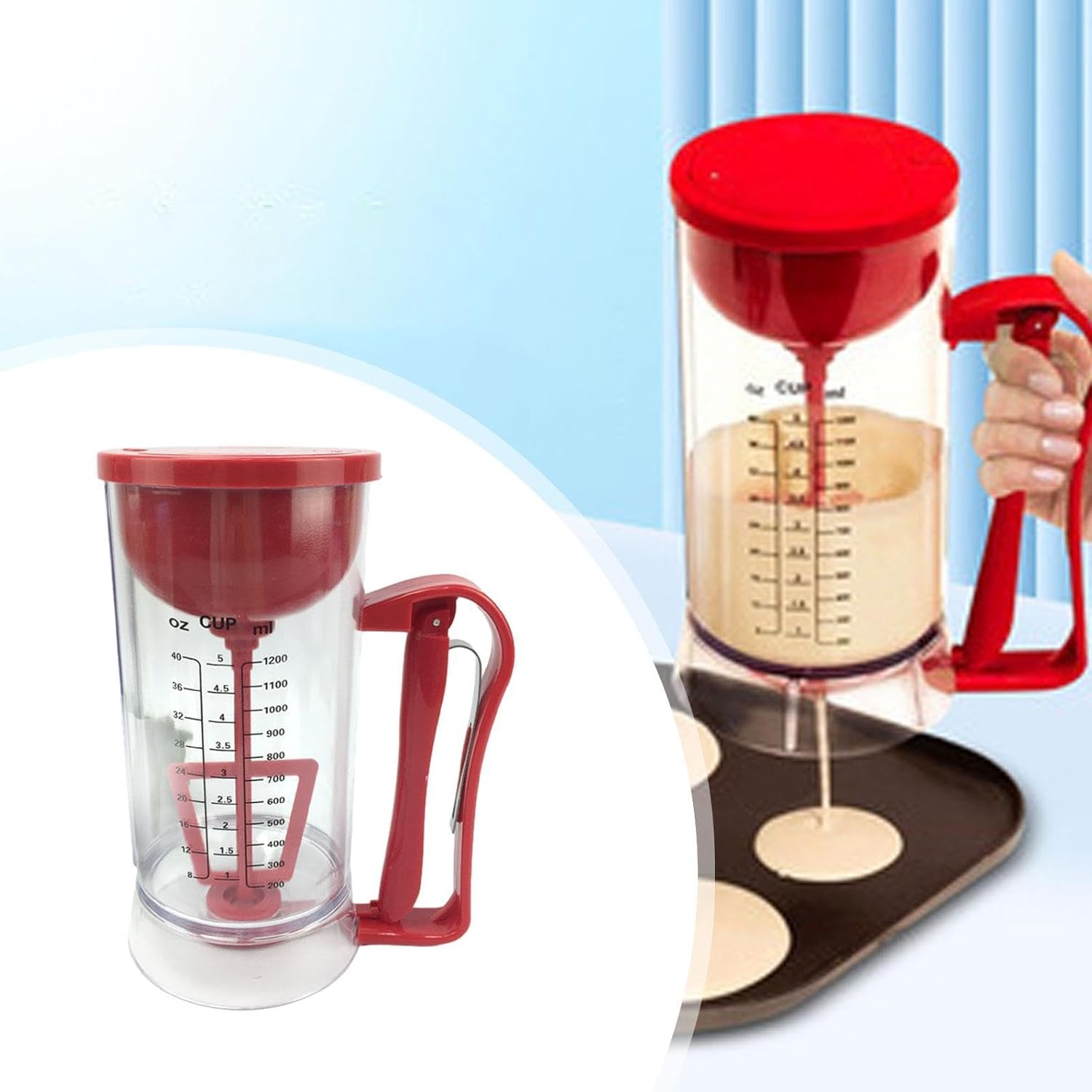 Pancake Batter Dispenser‘: The batter dispenser as a baking tool, its dispenser leak cup design can accurately control the flow of batter, avoid waste, and improve baking efficiency