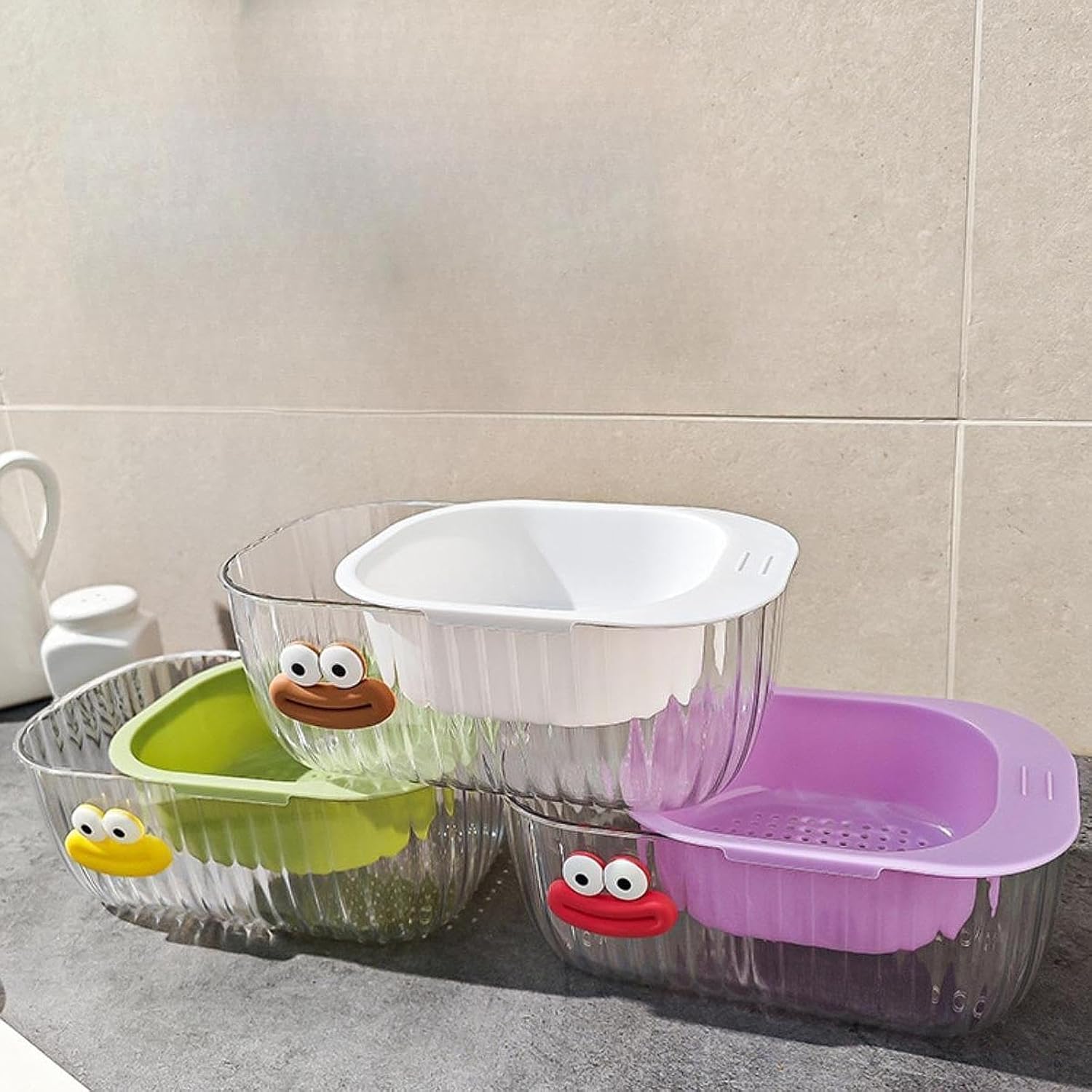 Space Saving and Practical‘: The vegetable washing basket is designed to filter water to keep fruits or vegetables washed. When not in use, it can be stacked with other foods and snacks,which is more convenient and saves space than a separate bowl or colander. Its practicality makes it a must have for any kitchen