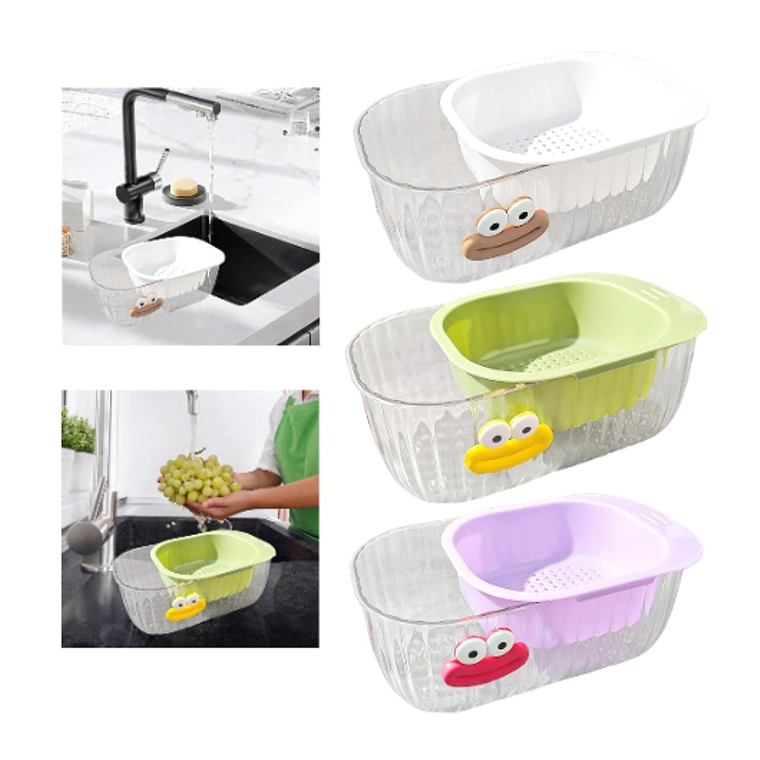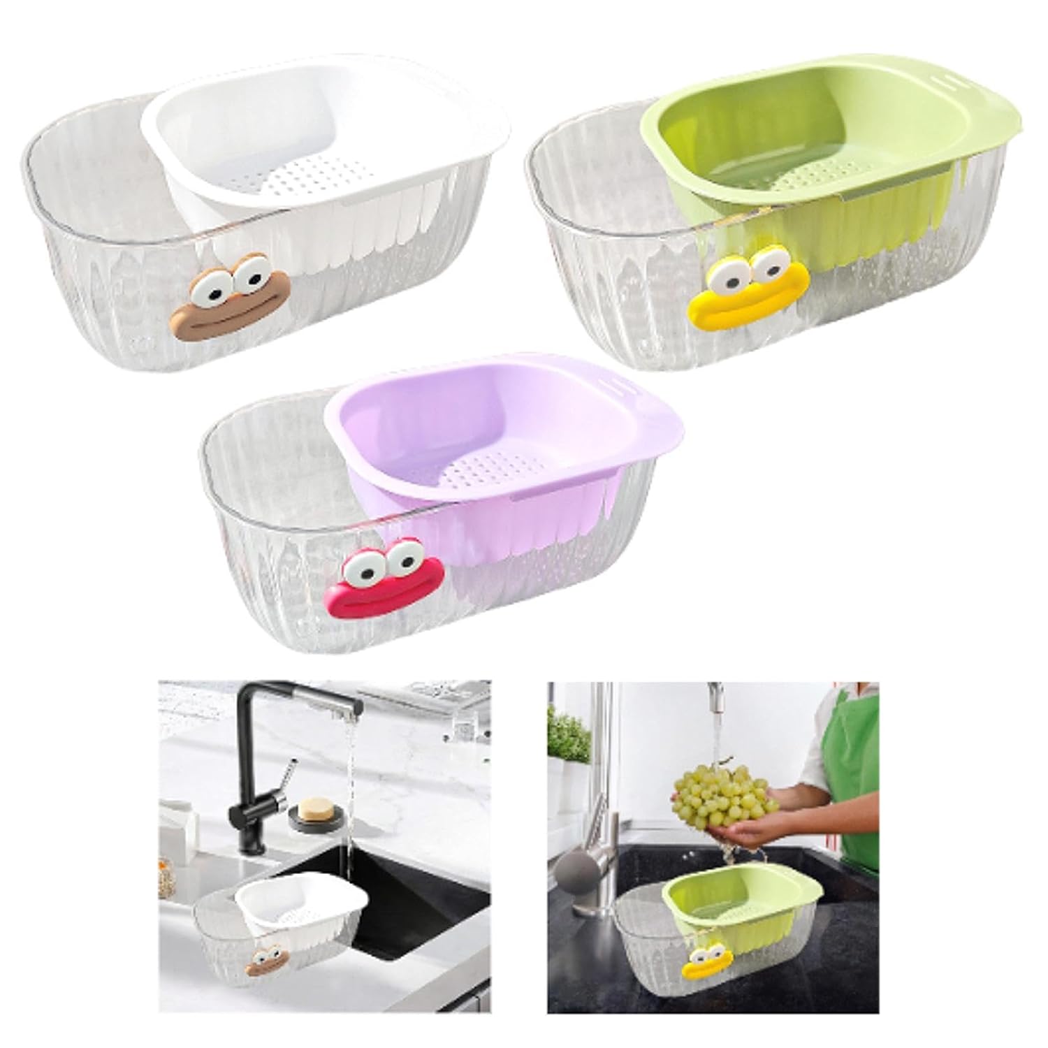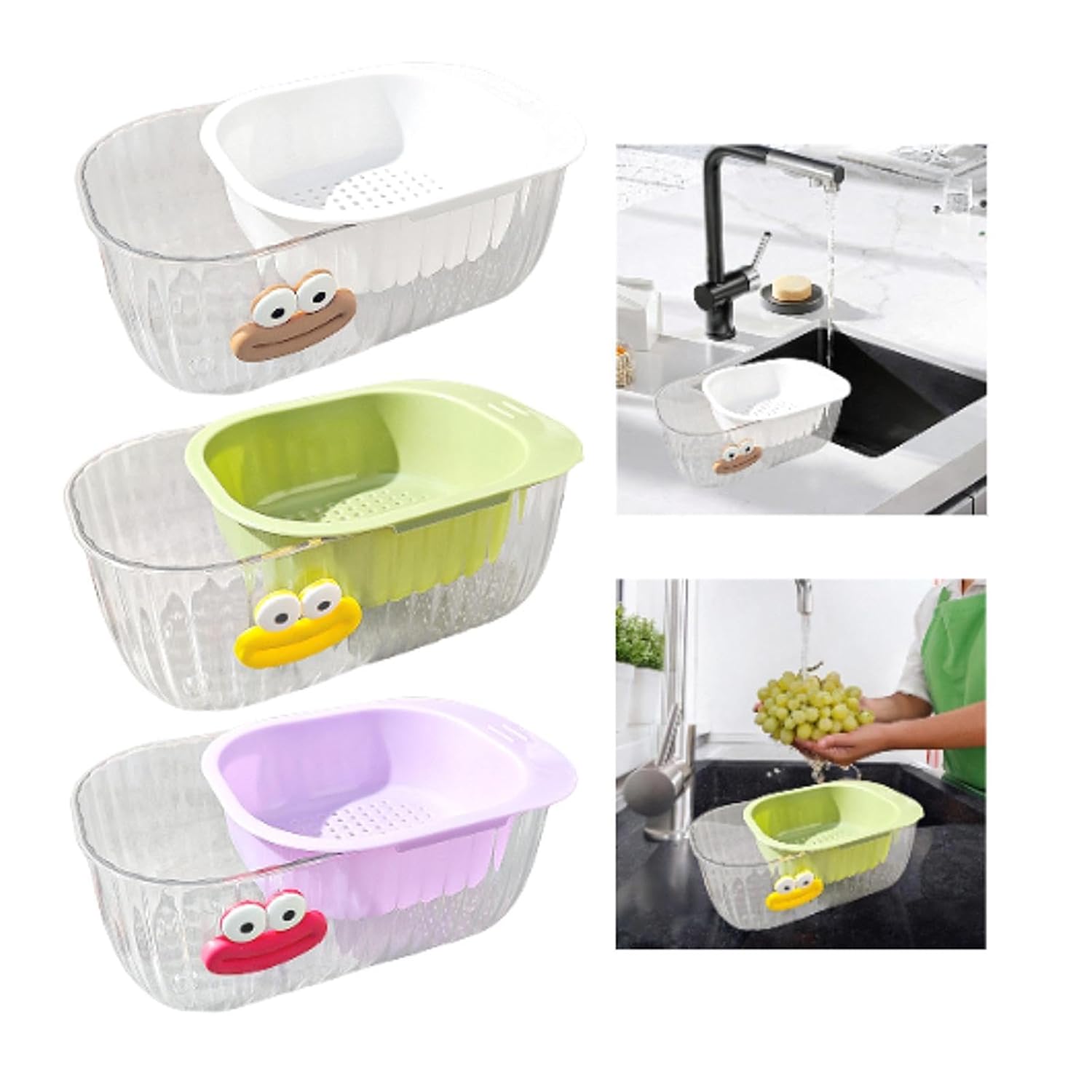 Efficient and Convenient‘: With a drain hole design, this drain basket can quickly drain water, making it practical and convenient to use. You can place the colander basket in the strainer bowl when soaking and washing produce, lifting out the colander, and placing it in the sink to drain effortlessly