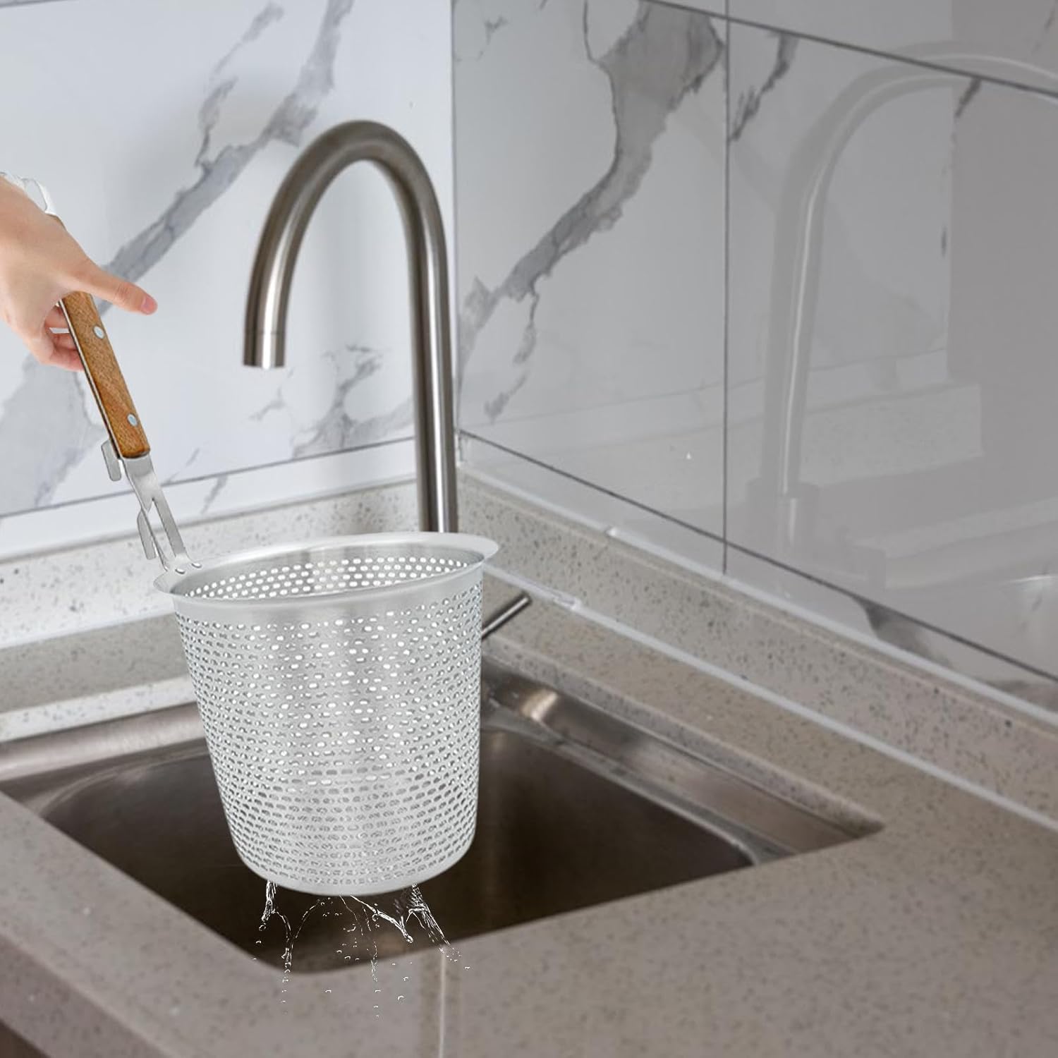 Multifunctional: Deep fry basket is large enough for boiling and straining pasta, ramen noodle, dumplings, and blanching veggies even frying chips, drumstick, fish, meatball, washing rice, berry, etc.They are must have gadgets in your kitchen