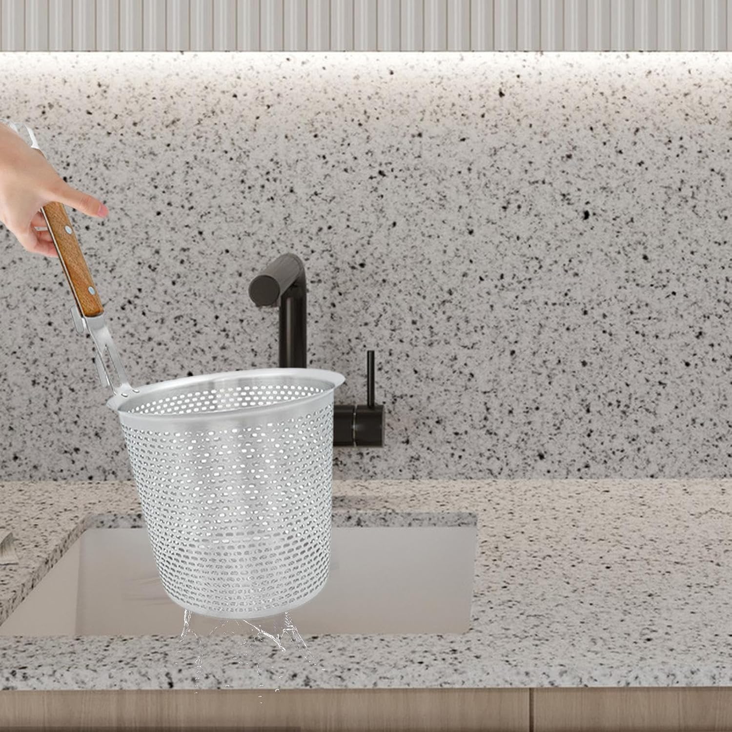 Widely Use: Ramen noodle strainer spoon with long wood handle are very versatile, ideal for rinsing, boiling, straining, draining, blanching, even frying, the pasta strainer spoon cook and strain food like it does in professional kitchen, meet your various needs