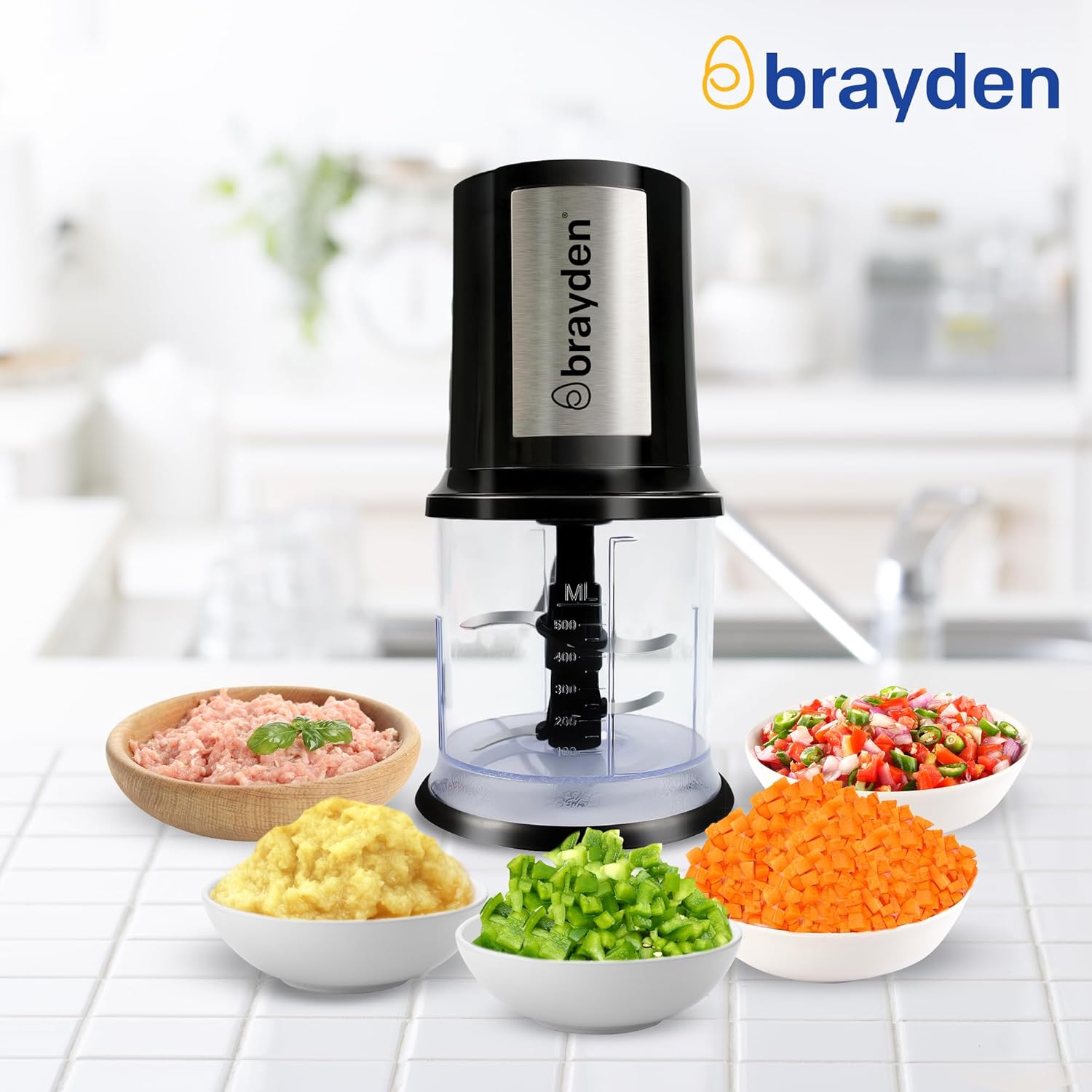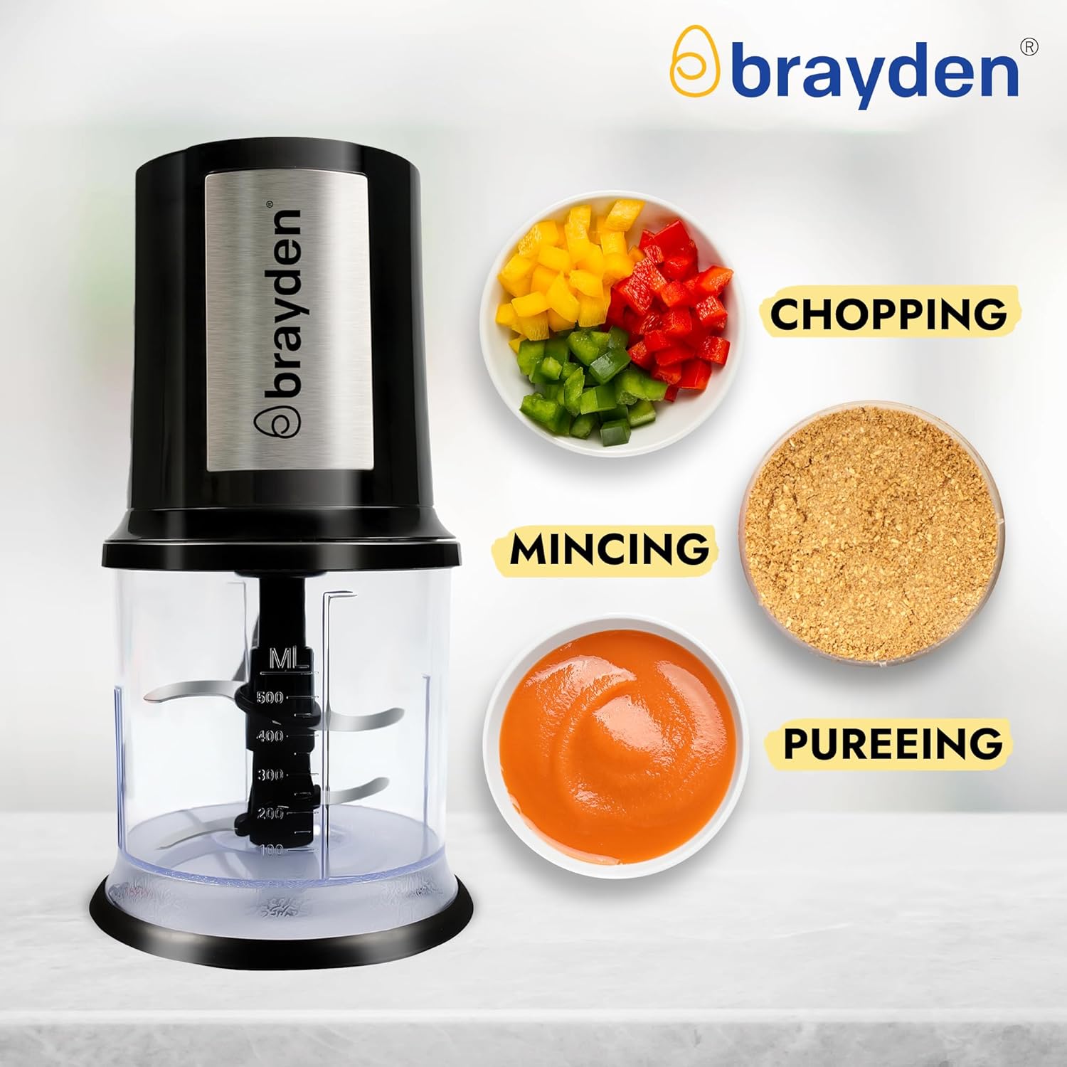ULTIMATE POWER : Brayden Chopro Electric Vegetable Chopper Functions with 400 Watts Pure copper motor, runs faster, and pulverizes the ingredients to make your favour food within seconds, doesn’t generate much heat.