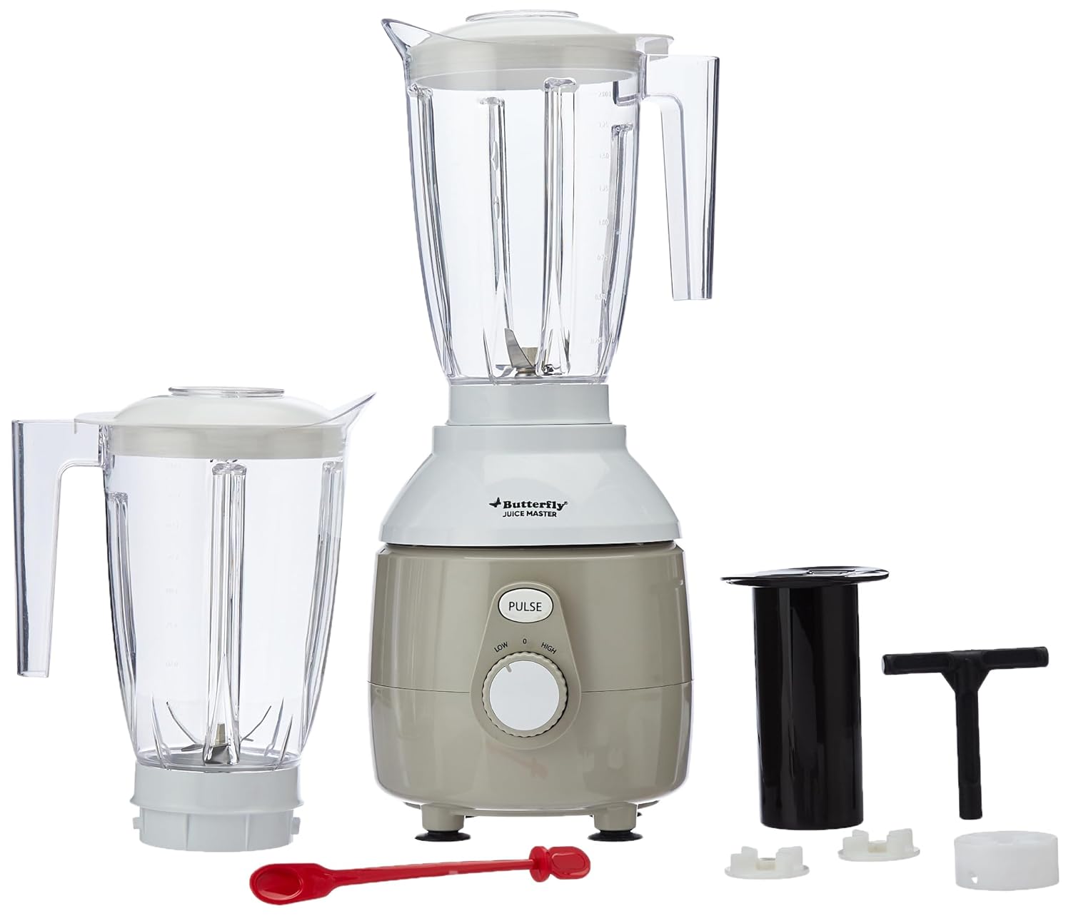 Elevate your juicing experience with the Butterfly Juice Master, a powerful 900W appliance designed to simplify your lifestyle. This juicer boasts two generous 2-liter jars, providing ample capacity for your juicing needs. Its unique features, such as self-lock jars and flow breaker, enhance your convenience and the quality of your juices. A double ball bearing motor gives the juicer a longer life. The six fin blades within this juicer ensure that you get the most out of every fruit or vegetable. The self-repair kit adds to the overall convenience, making it a breeze to maintain and keep your juicer operating at peak efficiency. In addition to its exceptional performance, this juicer is backed by a reassuring 1-year warranty, giving you peace of mind. The Butterfly Juice Master combines power, convenience, and durability, making it a valuable addition to your kitchen.