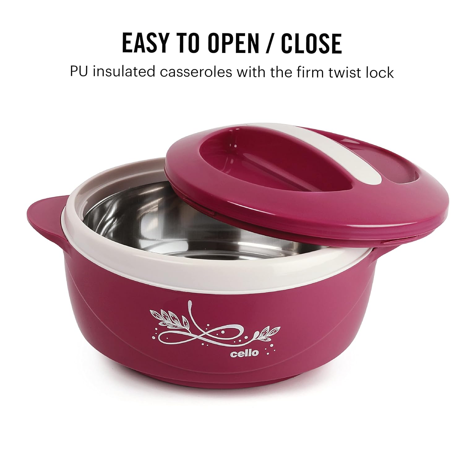 Inner Steel Double Insulated: The casserole is designed with advanced inner steel double insulation, ensuring that your dishes remain hot or cold for extended periods. This double-walled construction provides excellent thermal efficiency, keeping your meals at the perfect temperature from the kitchen to the table.