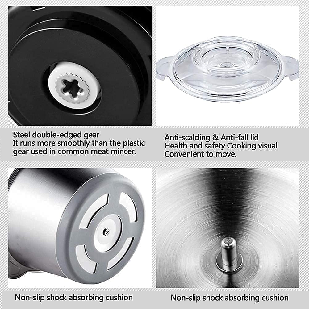 Multifunctional Food Chopper: This food grinder is equipped with 4 stainless steel blades and 2 modes to choose from. You can chop, grind various ingredients, such as onions, meat, ham, garlic, onion, small herbs. This electric mincer is an ideal gift for your wife, mother.