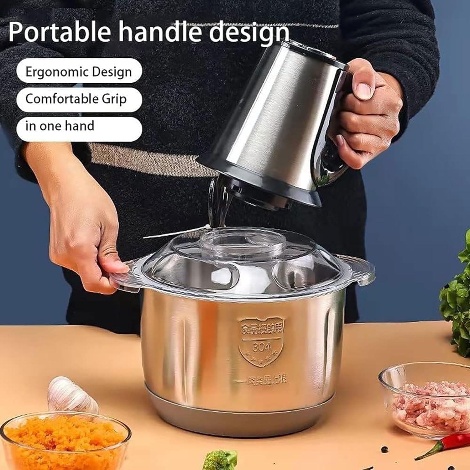 Large capacity and durability: The mini chopper is equipped with a stainless steel bowl and a capacity of 3 liters. Compared to glass bowls, it is strong, healthy and impact-resistant, ensuring durability.