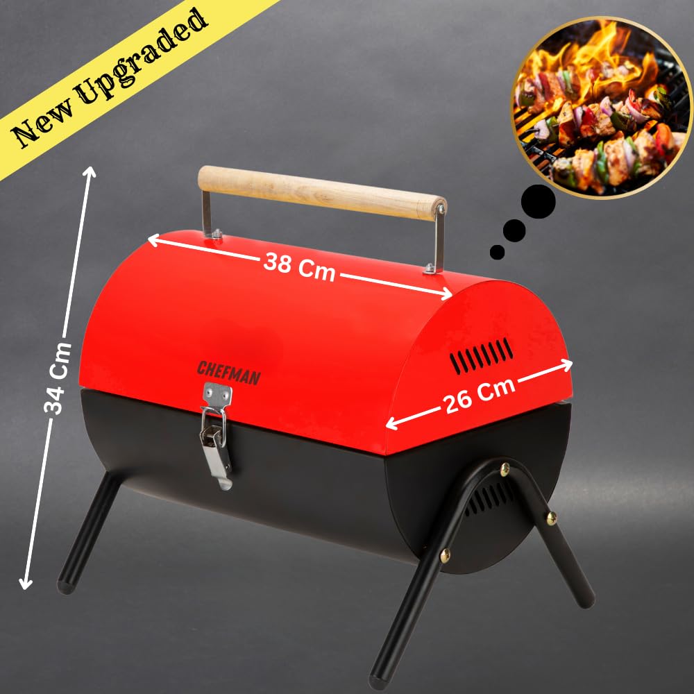 Introducing Chefman Barrel Barbeque with Dimesion 44-25 and 22 cm