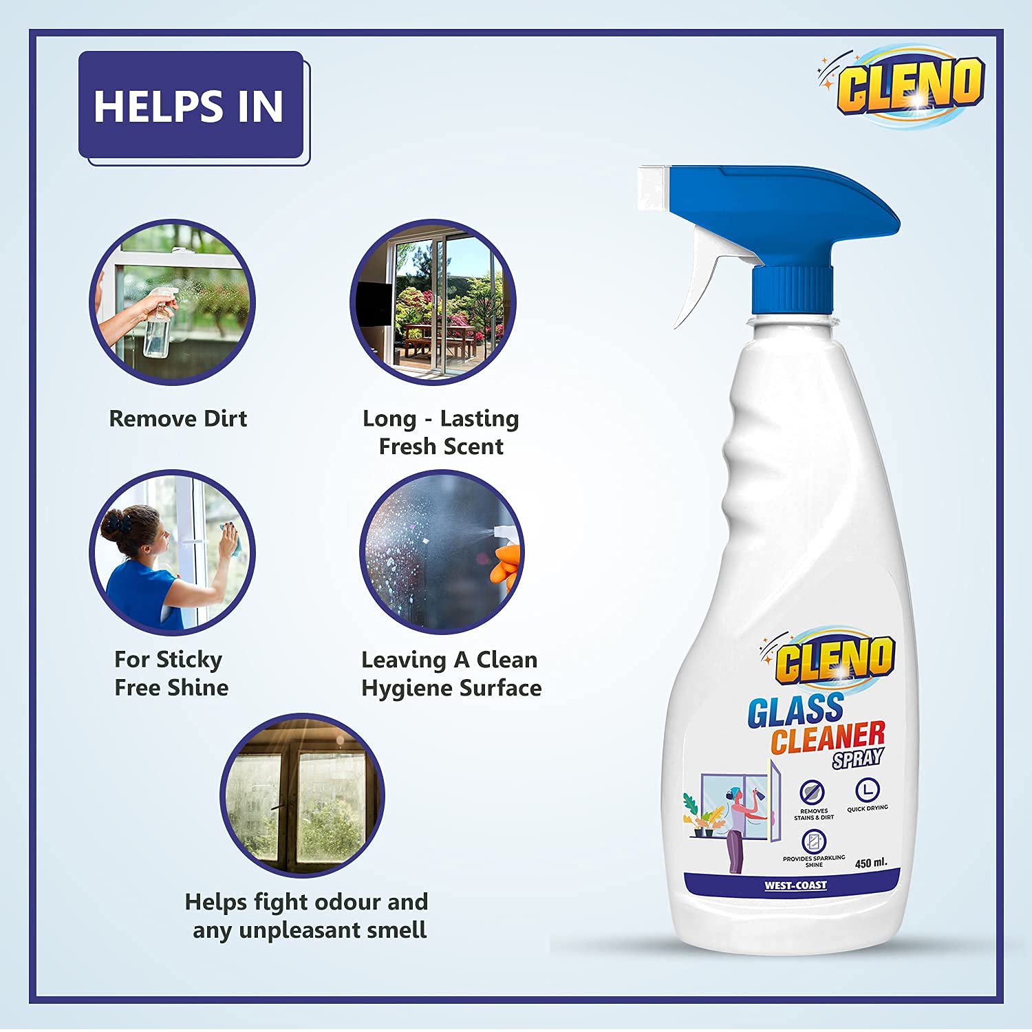 Introducing the Cleno Glass Cleaner Spray, the perfect solution for all your glass cleaning needs. This versatile cleaning product is specially formulated to provide a sticky free shine on a variety of surfaces, including tabletops, mirrors, glass windows, fridge, oven, kitchen cabinets, furniture, and car windows. The 450ml pack is ready to use, making it convenient and hassle-free. Customers love the Cleno Glass Cleaner Spray for its effective cleaning properties. It leaves surfaces shiny and reflective after cleaning, ensuring a super efficient and safe experience. The pleasant scent also adds to the overall cleaning experience, making it a favorite among friends, daughters, and families. The Cleno Glass Cleaner Spray is an effective and versatile cleaner that can be used daily or twice a week for all your house cleaning needs. Whether you are cleaning your car, house, or bathroom, this glass cleaner is the perfect tool for the job. In addition to its cleaning effectiveness, the Cleno Glass Cleaner Spray also fights odors and bacteria, ensuring a thorough and hygienic clean every time. Backed by West Coast Pharmaceuticals Works Ltd., this glass cleaner is a reliable choice for those looking for a value-for-money cleaning solution. Don’t settle for ineffective cleaning products – choose Cleno Glass Cleaner Spray for a superior cleaning experience every time.