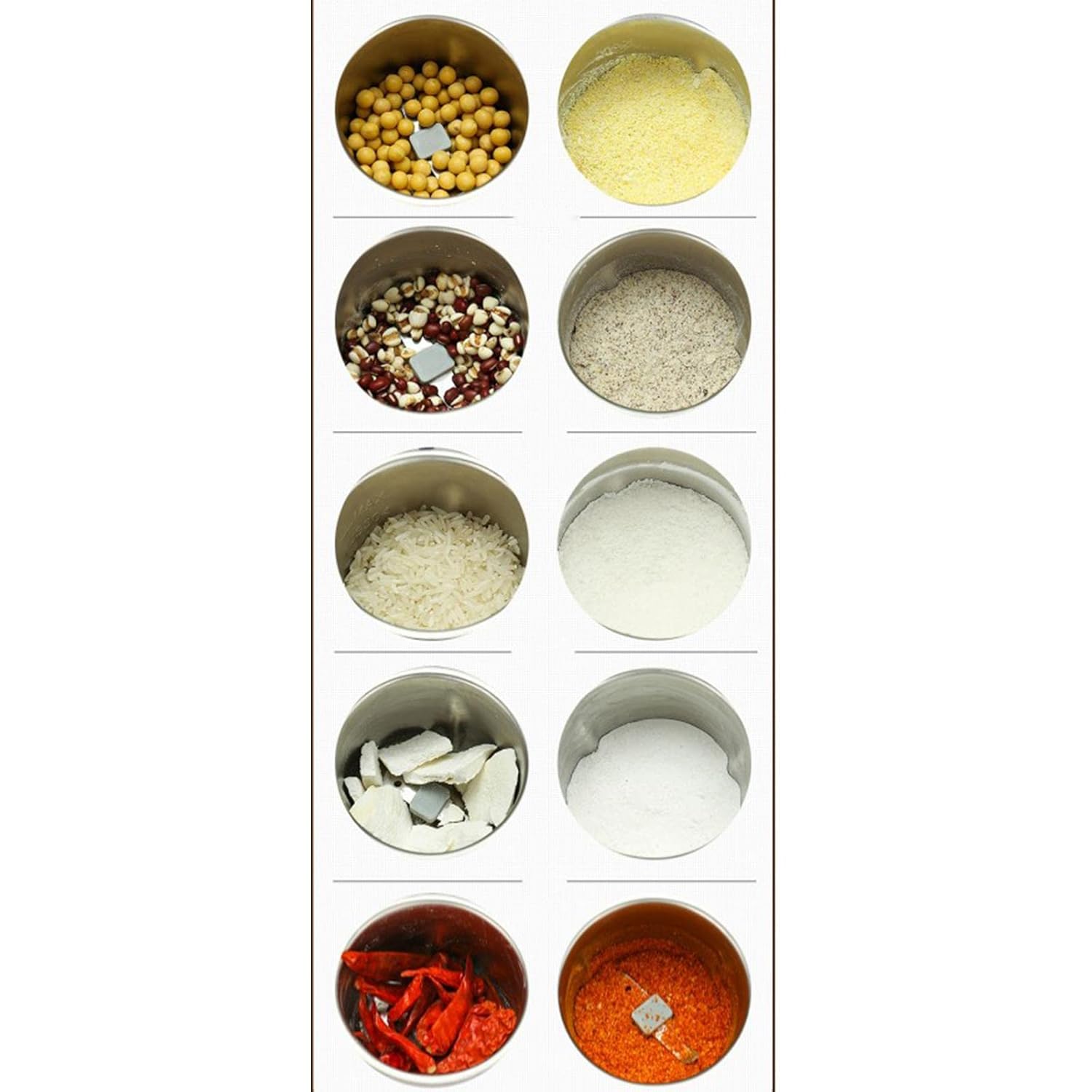 Suitable for grinding dry goods like coffee beans, beans, nuts, spice, herbs etc.