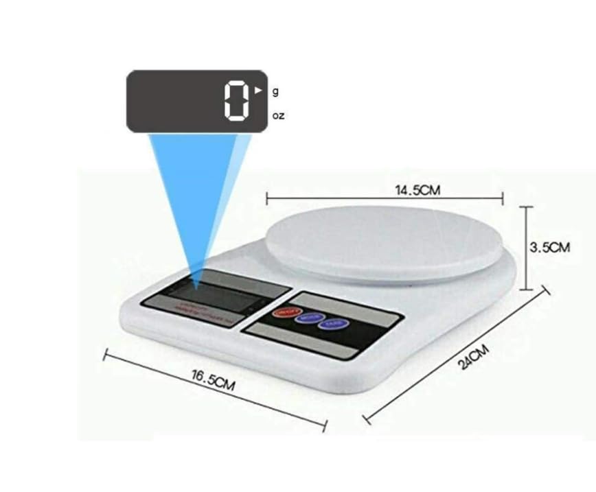 Introducing our Digital Kitchen Weighing Scale, a must-have tool for precision cooking and baking. Here’s why it stands out: Accurate Measurement: Get precise measurements with its high-precision sensors, ensuring accuracy down to the gram or ounce. Sleek Design: Designed to complement any kitchen decor, its sleek and slim profile makes it easy to store when not in use. Multiple Units: Easily switch between units (grams, ounces, pounds, kilograms) to suit your recipe’s requirements with just the press of a button. Tare Functionality: Conveniently zero out the weight of containers or ingredients, allowing you to measure ingredients individually without the need for mental calculations. Large Display: The large, easy-to-read LCD display provides clear readings, even when measuring large quantities or in dim lighting conditions. Compact and Portable: Its compact size and lightweight design make it perfect for both home kitchens and on-the-go cooking adventures. Durable Construction: Built to withstand the rigors of everyday kitchen use, featuring a sturdy and easy-to-clean surface. With our Digital Kitchen Weighing Scale, you’ll elevate your cooking and baking game with precision and ease.
