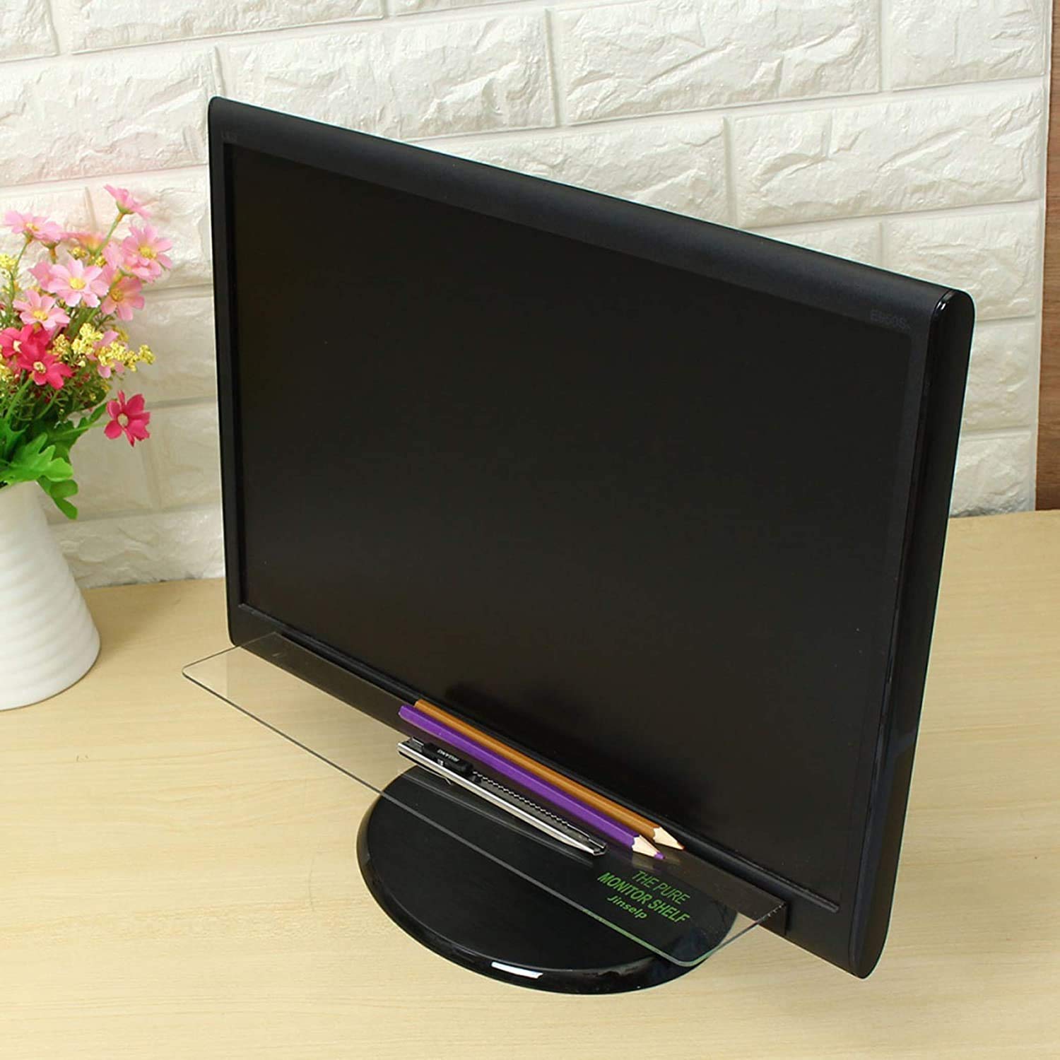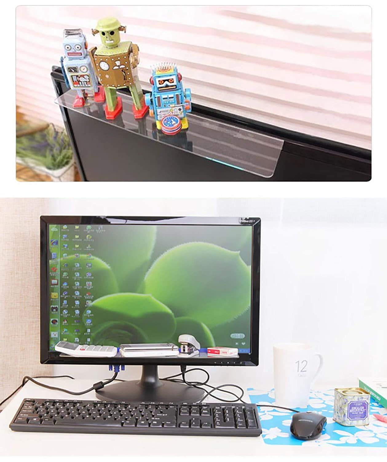 Package Include: 1 X Monitor Shelf ::::::: Size: 35 X 7 X 2 CM (the width of monitor more than 14″ would be fix this memo board) || Material: Acrylic || Color: Transparent
