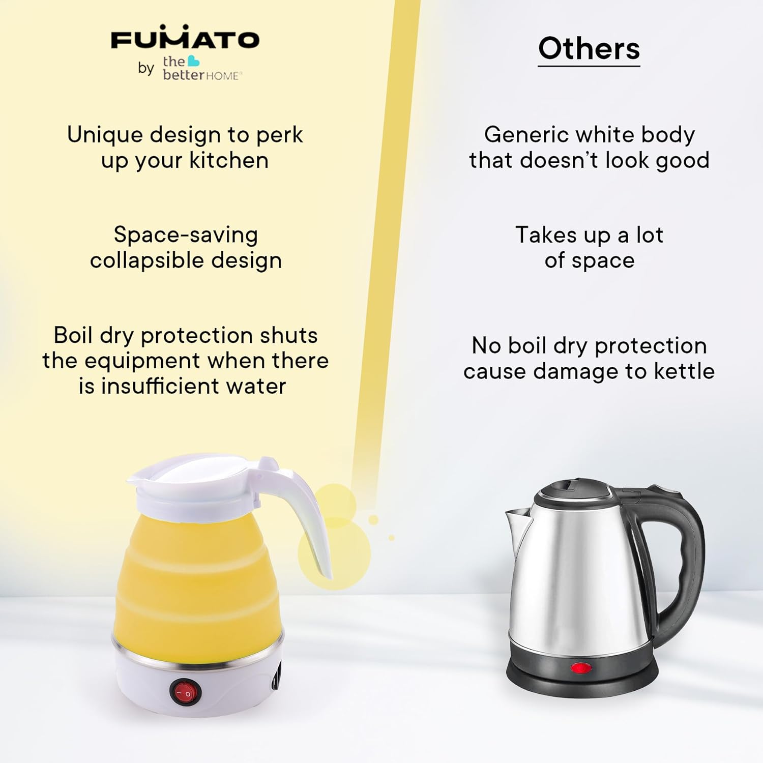 DURABLE & PORTABLE: The FUMATO Multipurpose Electric Kettle is built with durability in mind, using high-quality materials such as food-grade silicone and SS 304. Its portable design makes it a convenient choice for those on the move, perfect for small kitchens, hostels, and offices, weighing a mere 400g.